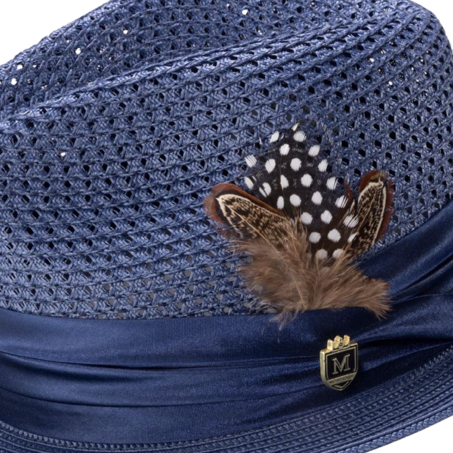 Glossaric Collection: Montique Navy Solid Color Pinch Mesh Braided Fedora With Matching Satin Ribbon Hat