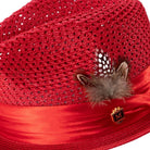 Glossaric Collection: Montique Red Solid Color Pinch Mesh Braided Fedora With Matching Satin Ribbon Hat