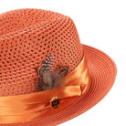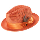 Glossaric Collection: Montique Salmon Solid Color Pinch Mesh Braided Fedora With Matching Satin Ribbon Hat