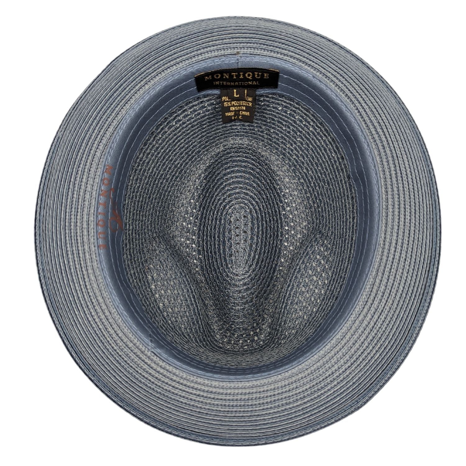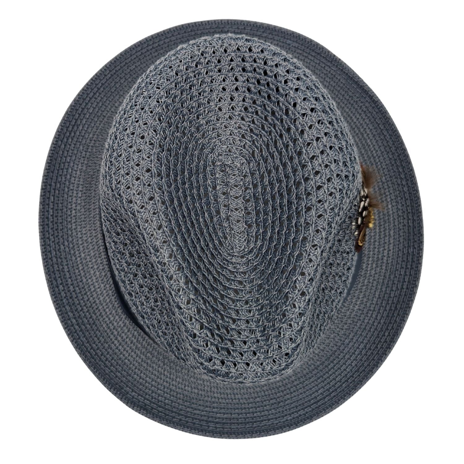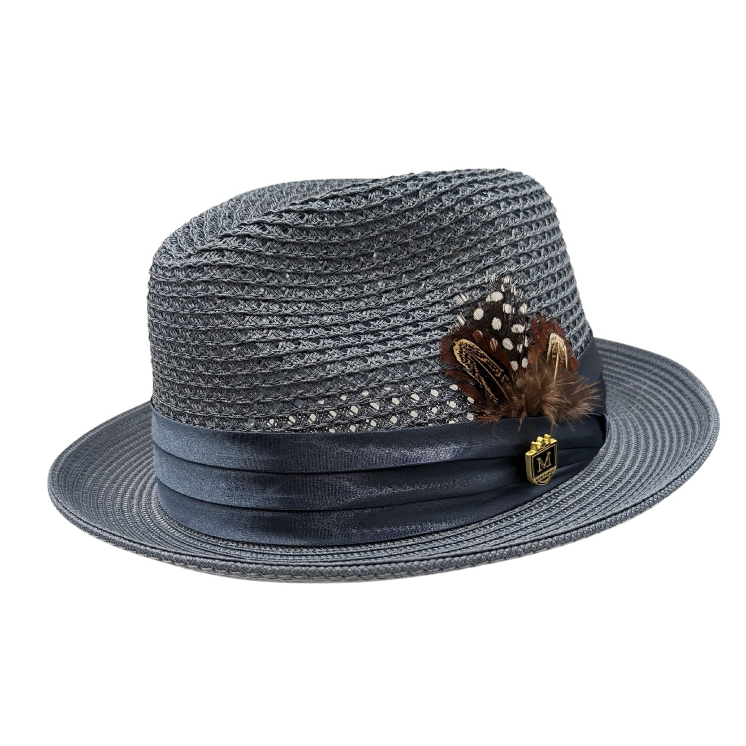 Glossaric Collection: Montique Slate Solid Color Pinch Mesh Braided Fedora With Matching Satin Ribbon Hat