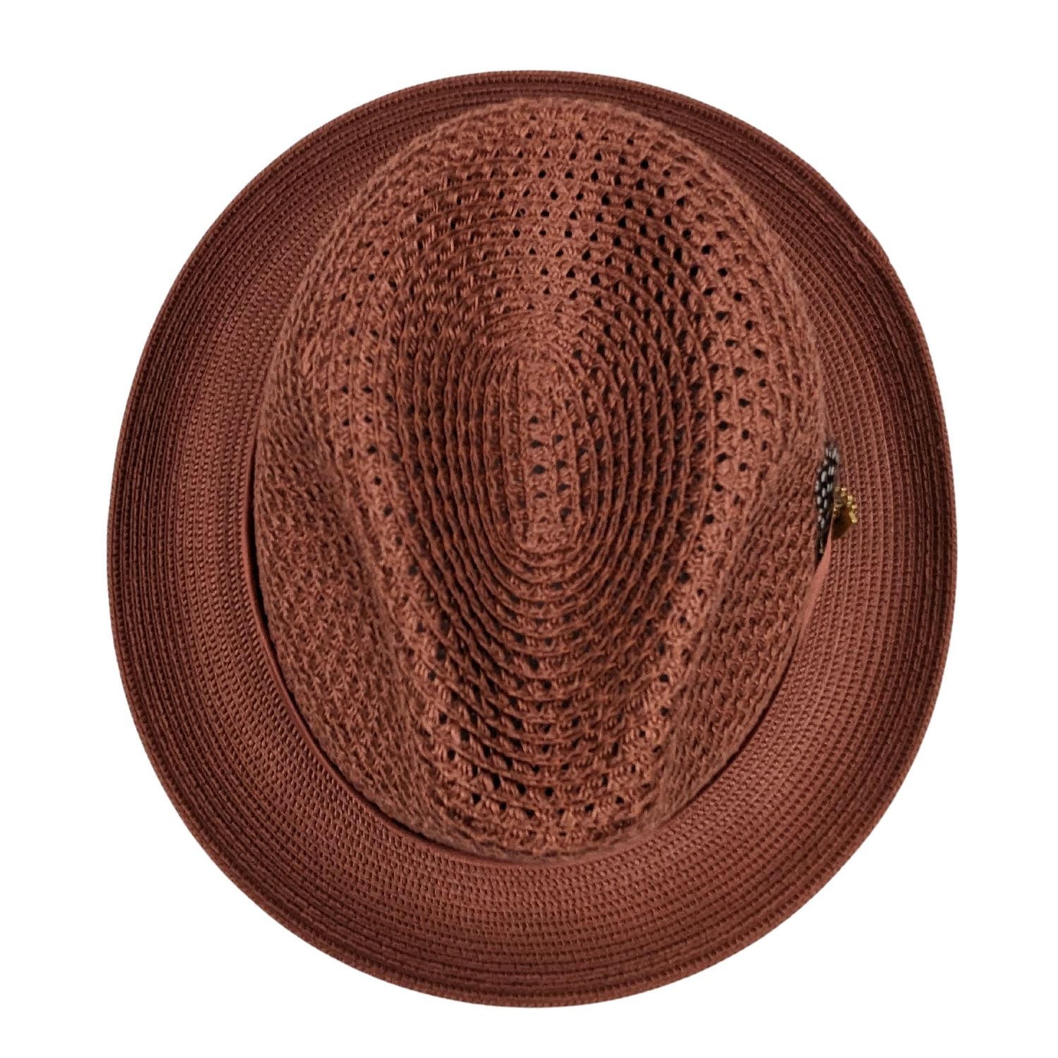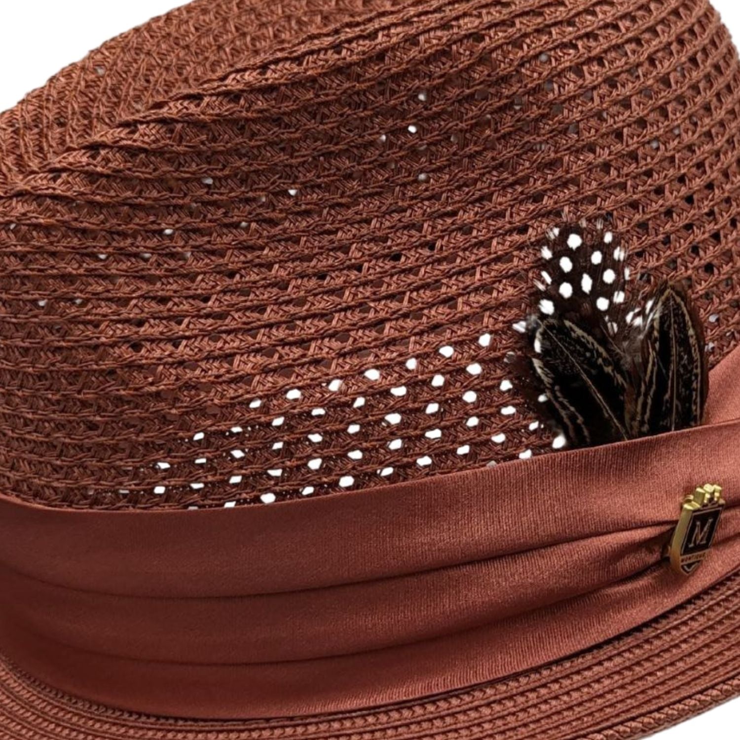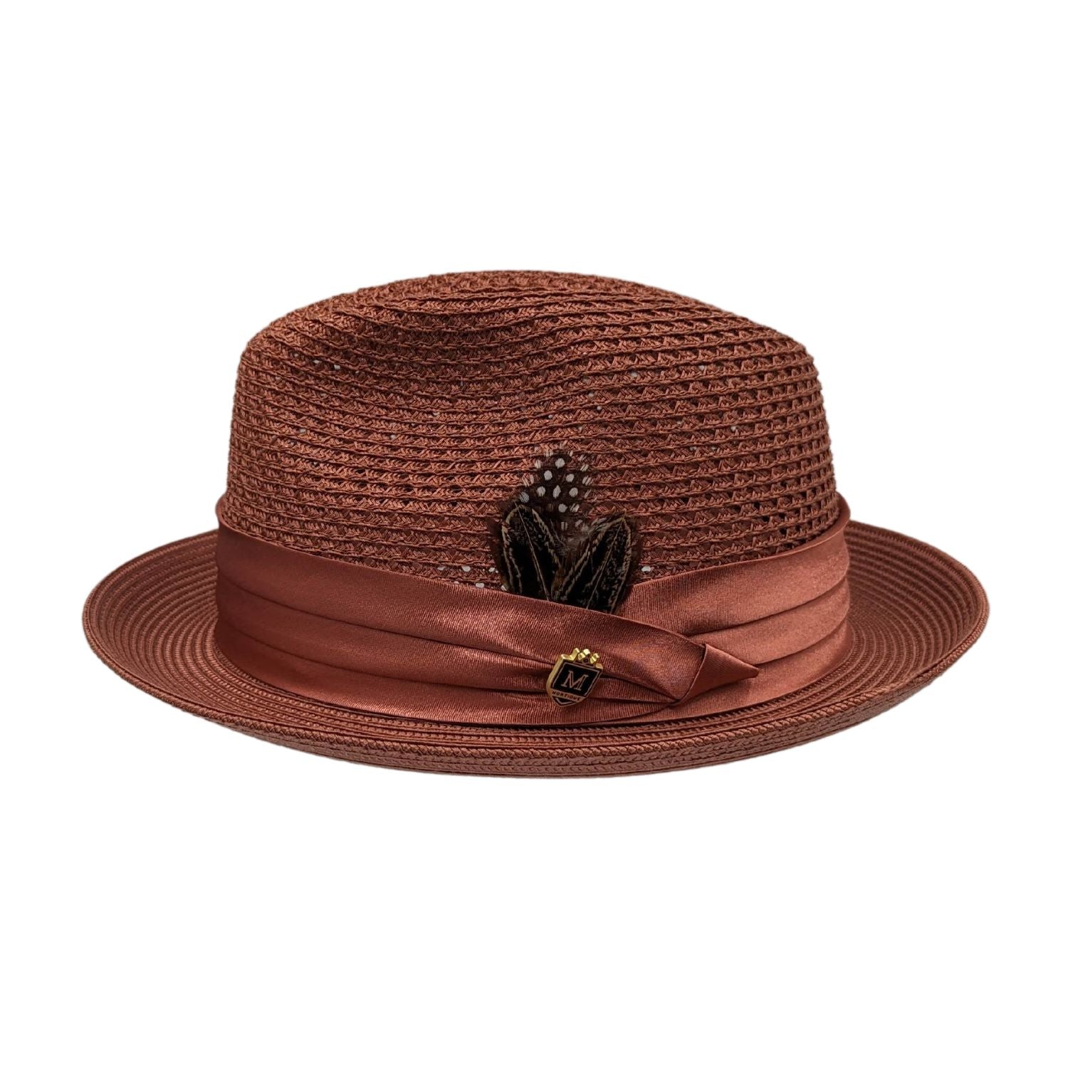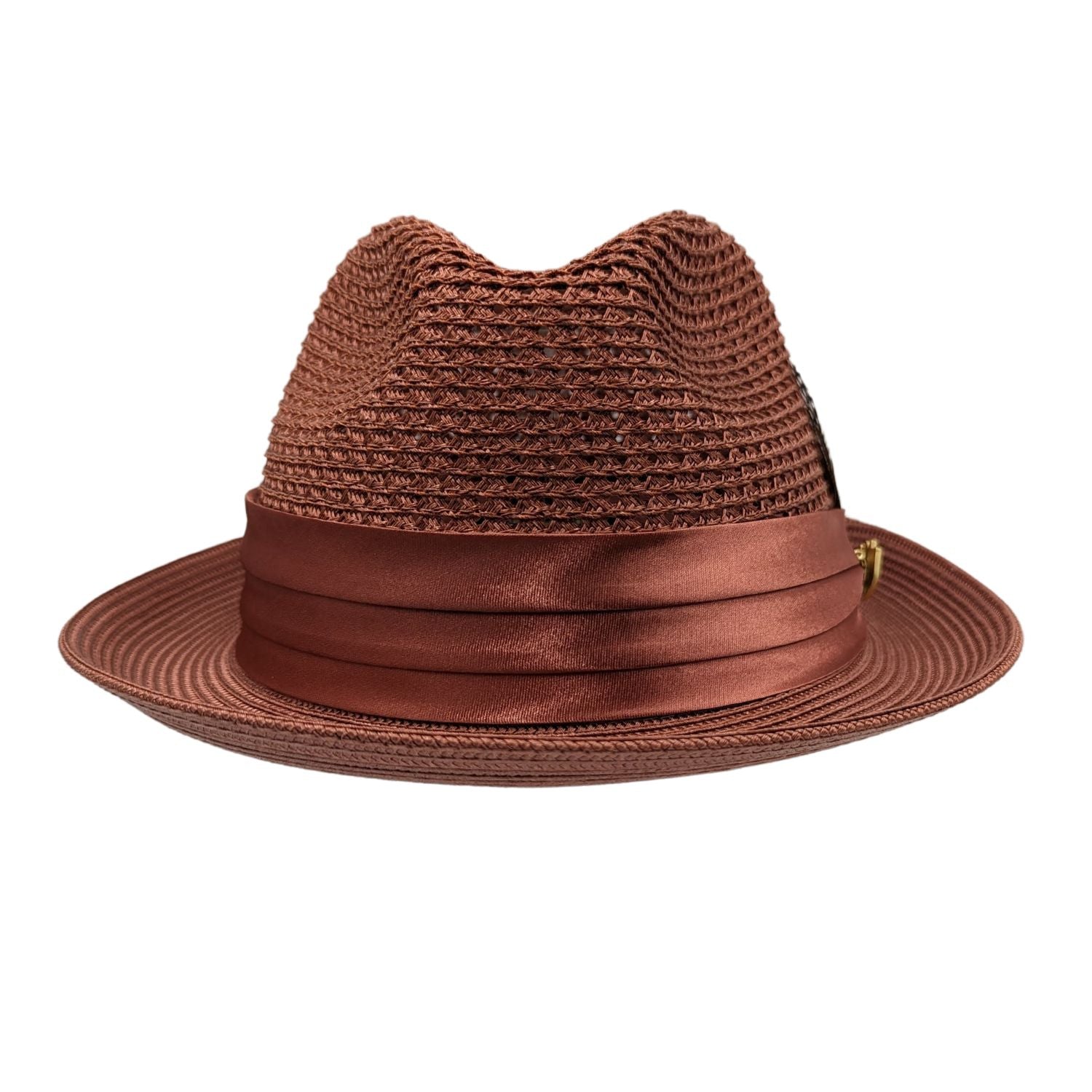 Glossaric Collection: Montique Spice Solid Color Pinch Mesh Braided Fedora With Matching Satin Ribbon Hat