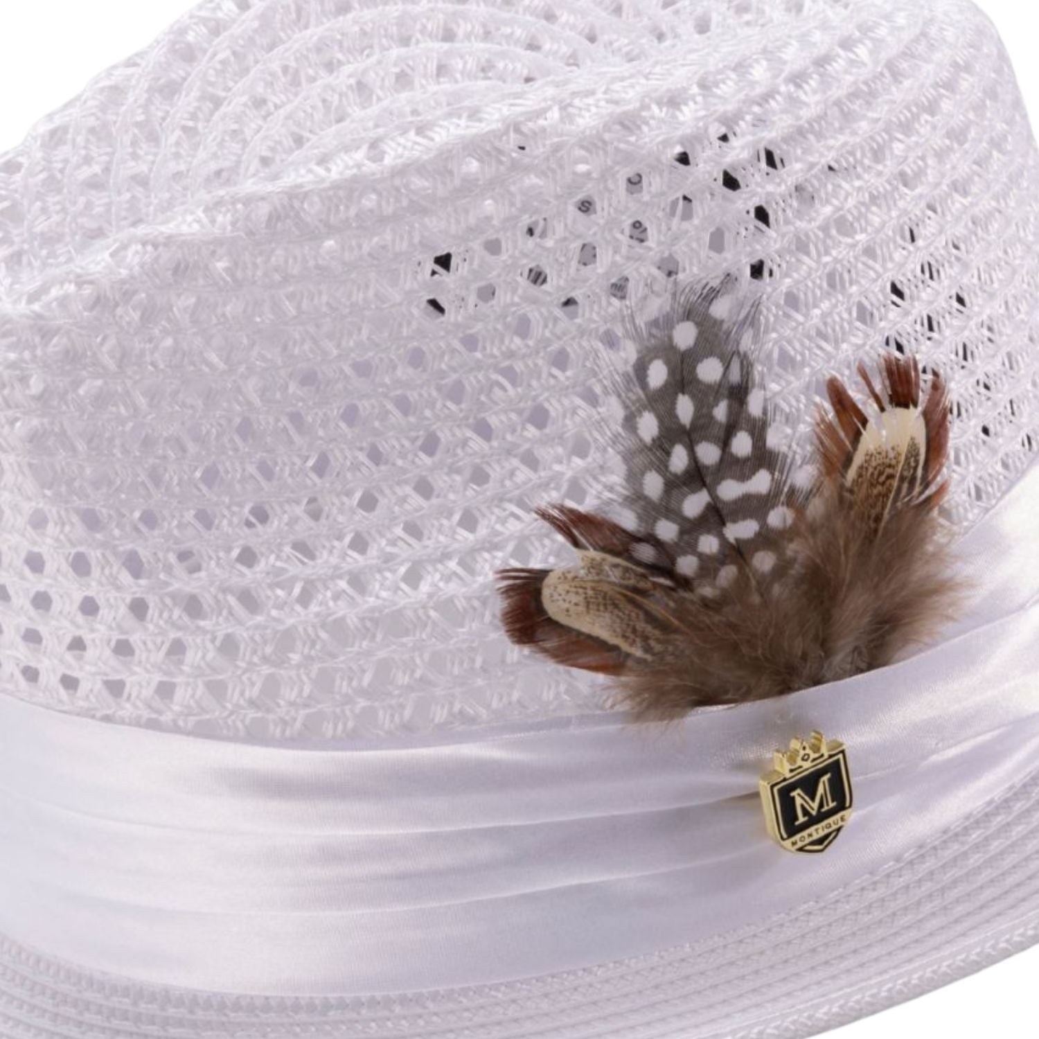 Glossaric Collection: Montique White Solid Color Pinch Mesh Braided Fedora With Matching Satin Ribbon Hat