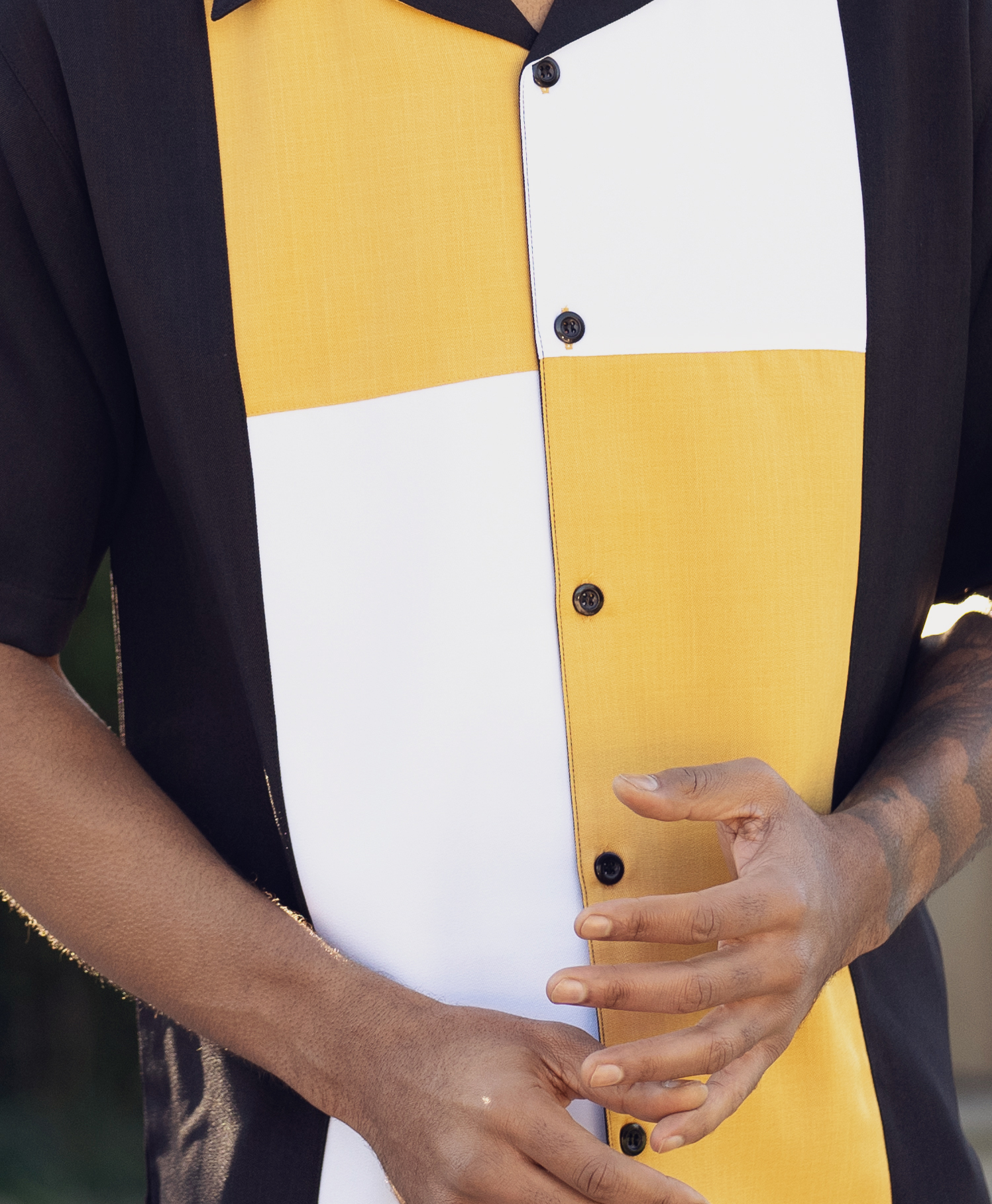 Gold Color Block Walking Suit 2 Piece Short Sleeve Set 2301