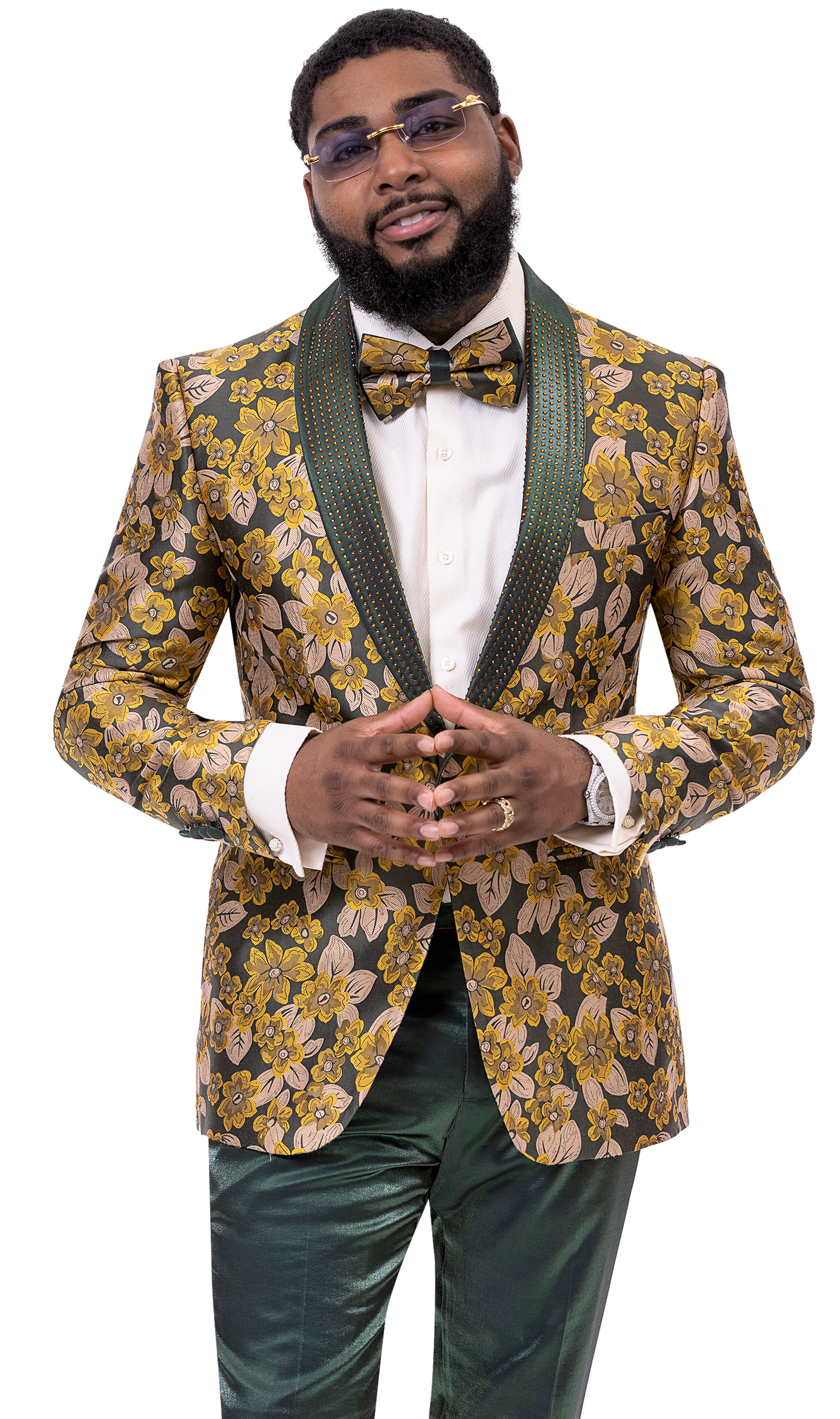 Green Floral Print 2 Piece Fashion Suit - FINAL SALE Size 42R/36 Waist