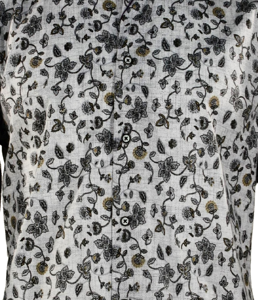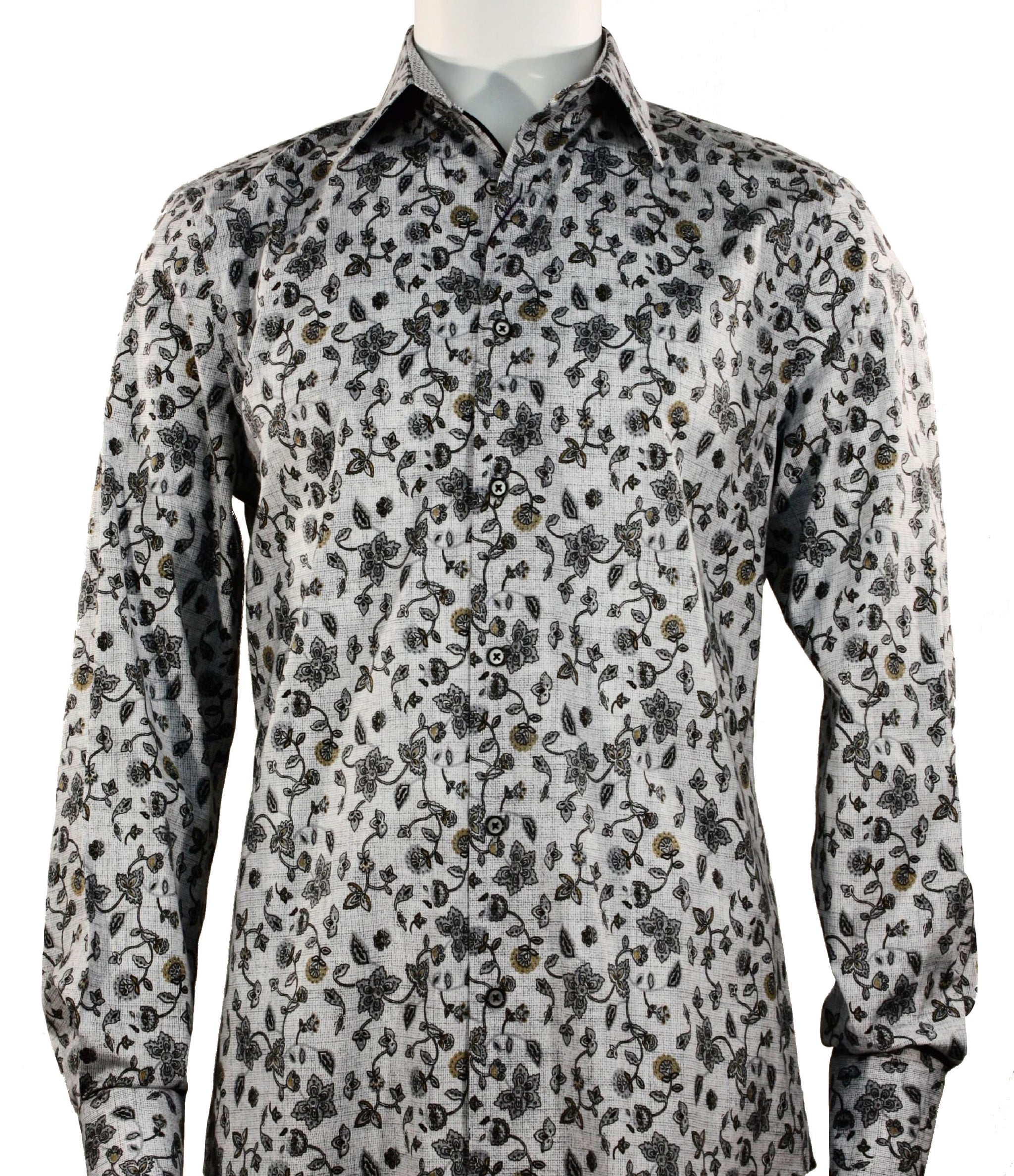 Cado Grey Floral Pattern Printed Long Sleeve Button-Up Cotton Shirt 172