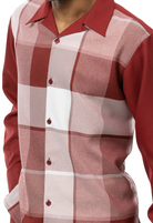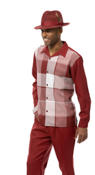 Grid Collection: Montique Burgundy Windowpane Long Sleeve Walking Suit Set -2370