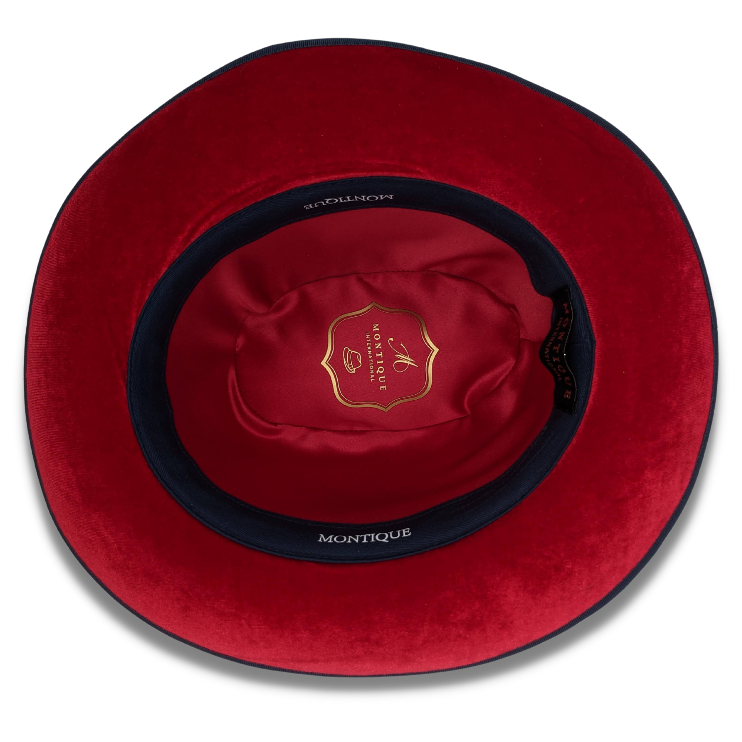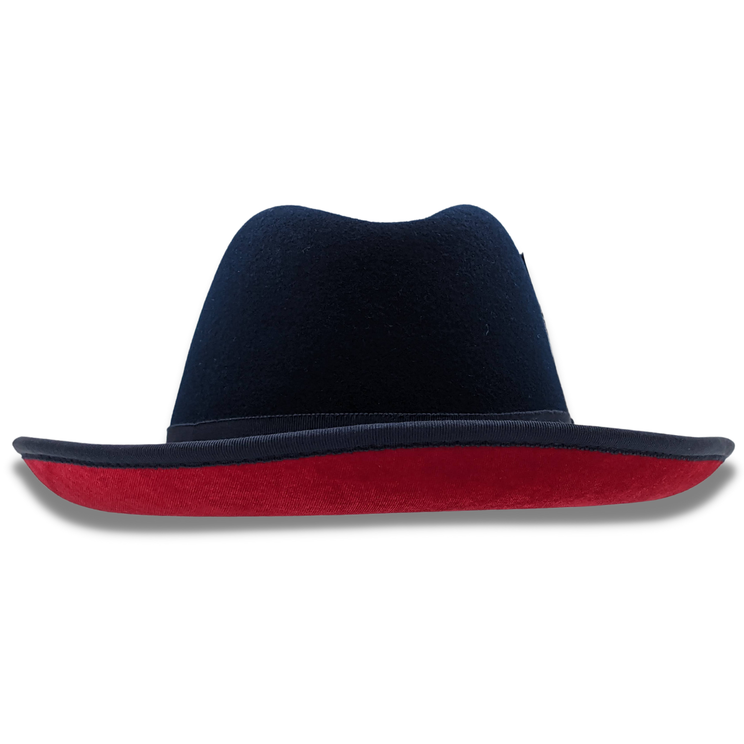 Groovify Collection: Montique Navy 2 3/4" Brim Red Bottom Wool Felt Dress Hat