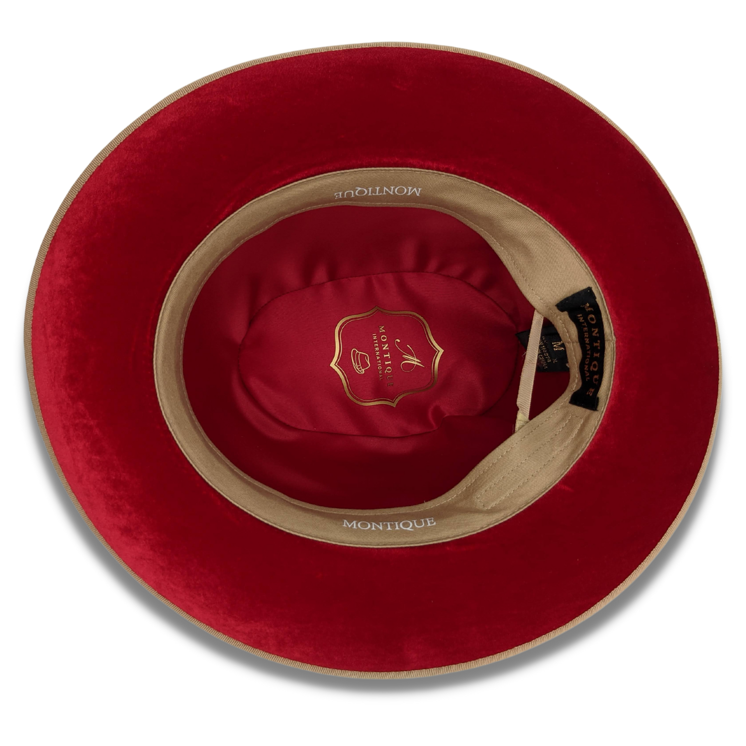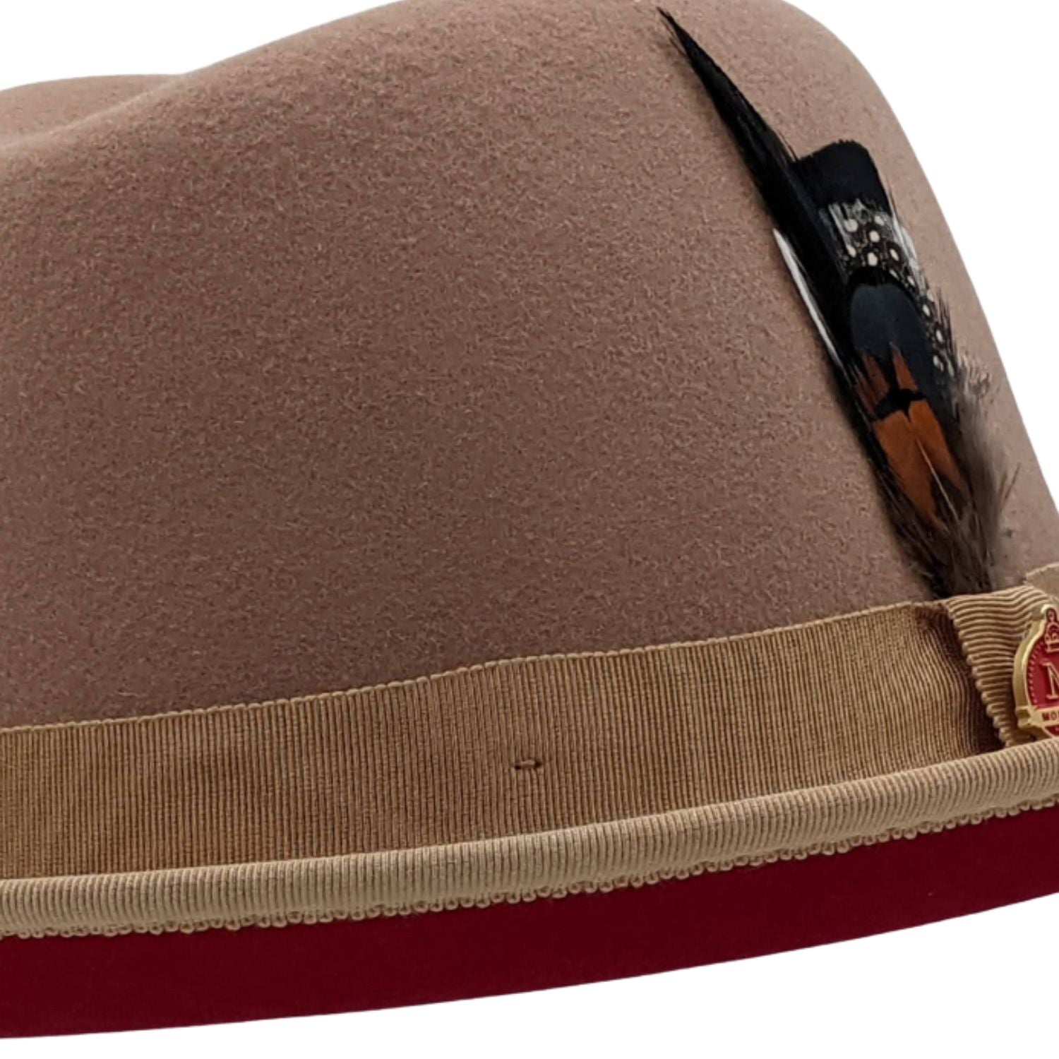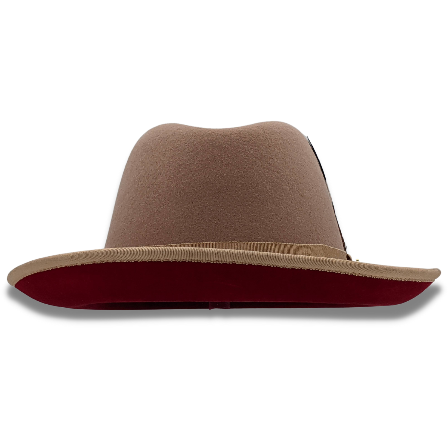 Groovify Collection: Montique Tan 2 3/4" Brim Red Bottom Wool Felt Dress Hat