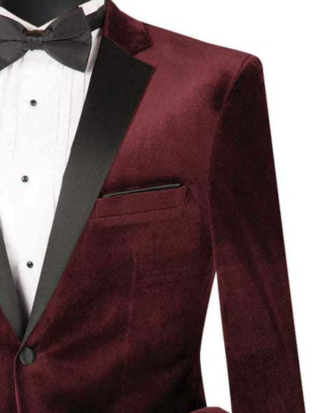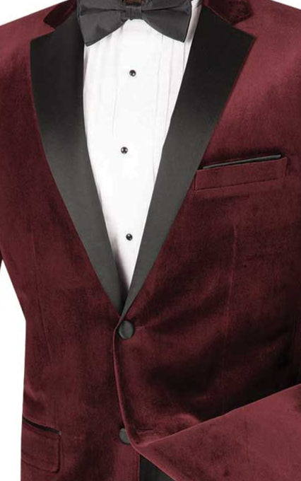 Hartley Collection: Velvet Slim Fit Wine Tuxedo for Men