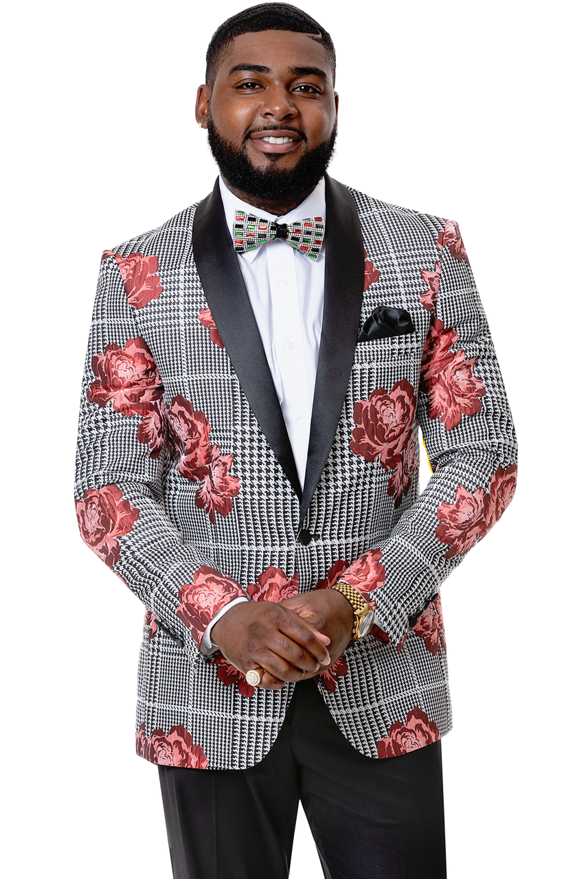 Houndstooth Floral Print Fashion Blazer J60 - FINAL SALE Size 44R