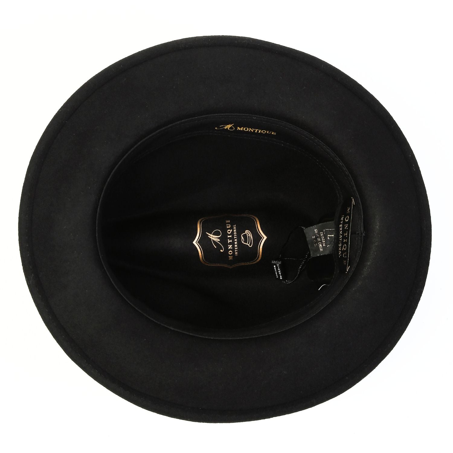 Imperialis Collection: Montique Black/Cognac with Matching Grossgrain Ribbon 2 1/2" Wool Felt Fedora Hat