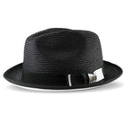 Innovique Collection: Black White Bottom Braided Stingy Brim Pinch Fedora Hat