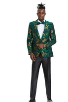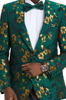 Intricate Collection: Men's Slim Fit Paisley Blazer in Green & Gold