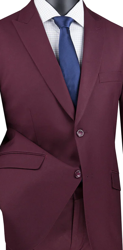 Iris Innovations Collection: Maroon 2 Piece Solid Color Single Breasted Modern Fit Suit
