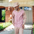 Embrace a sleek and stylish look with the Itokawa Collection's Modern Geometric Circle Pattern Walking Suit in Tan. The long-sleeve shirt features a captivating abstract pattern in shades of Tan and light gray, creating a dynamic visual effect that's both striking and sophisticated. Paired with solid Tan trousers, the ensemble offers a streamlined look that's versatile for both casual gatherings and more formal occasions.