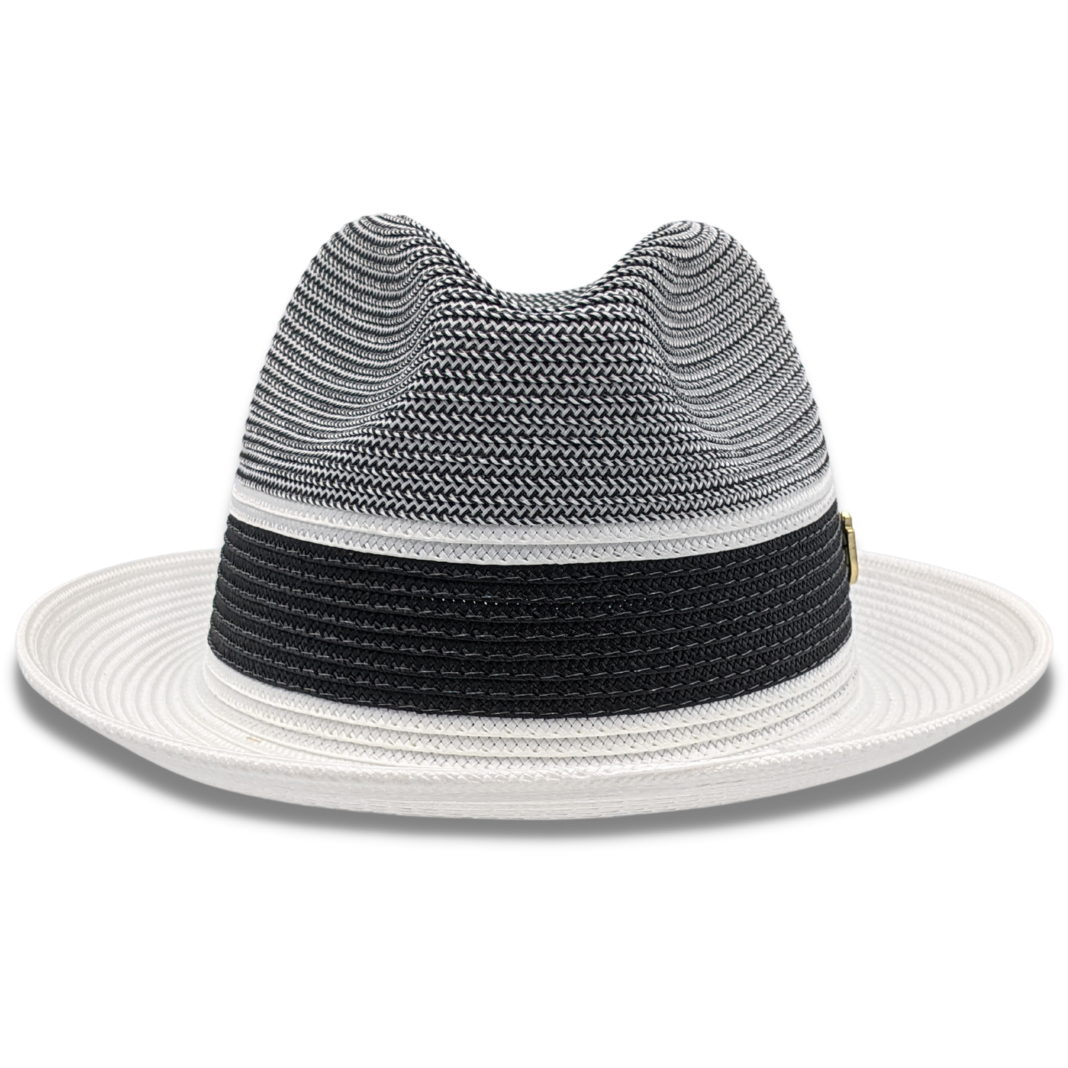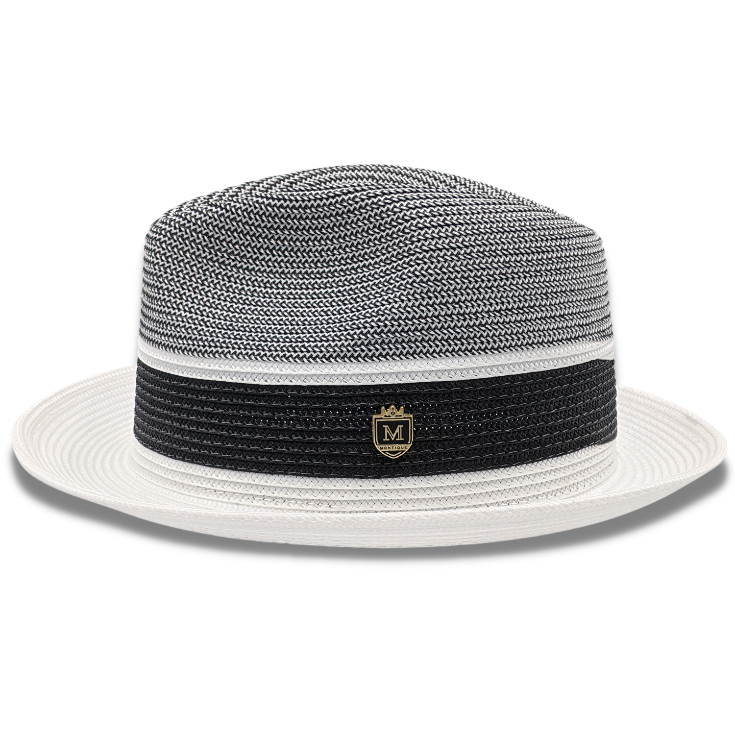 Ivorythm Collection: Montique White Two Tone Braided Pinch Fedora Hat