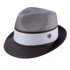 Elevate your style with the Plum Men's Braided Two-Tone Pinch Fedora Hat from our Ivorythm Collection. This exquisite hat features a braided design with a two-tone ribbon, complemented by a pinch crown and a Montique pin for added flair. With no lining and a solid color brim measuring 2 inches, this hat combines comfort with sophistication for any occasion.
