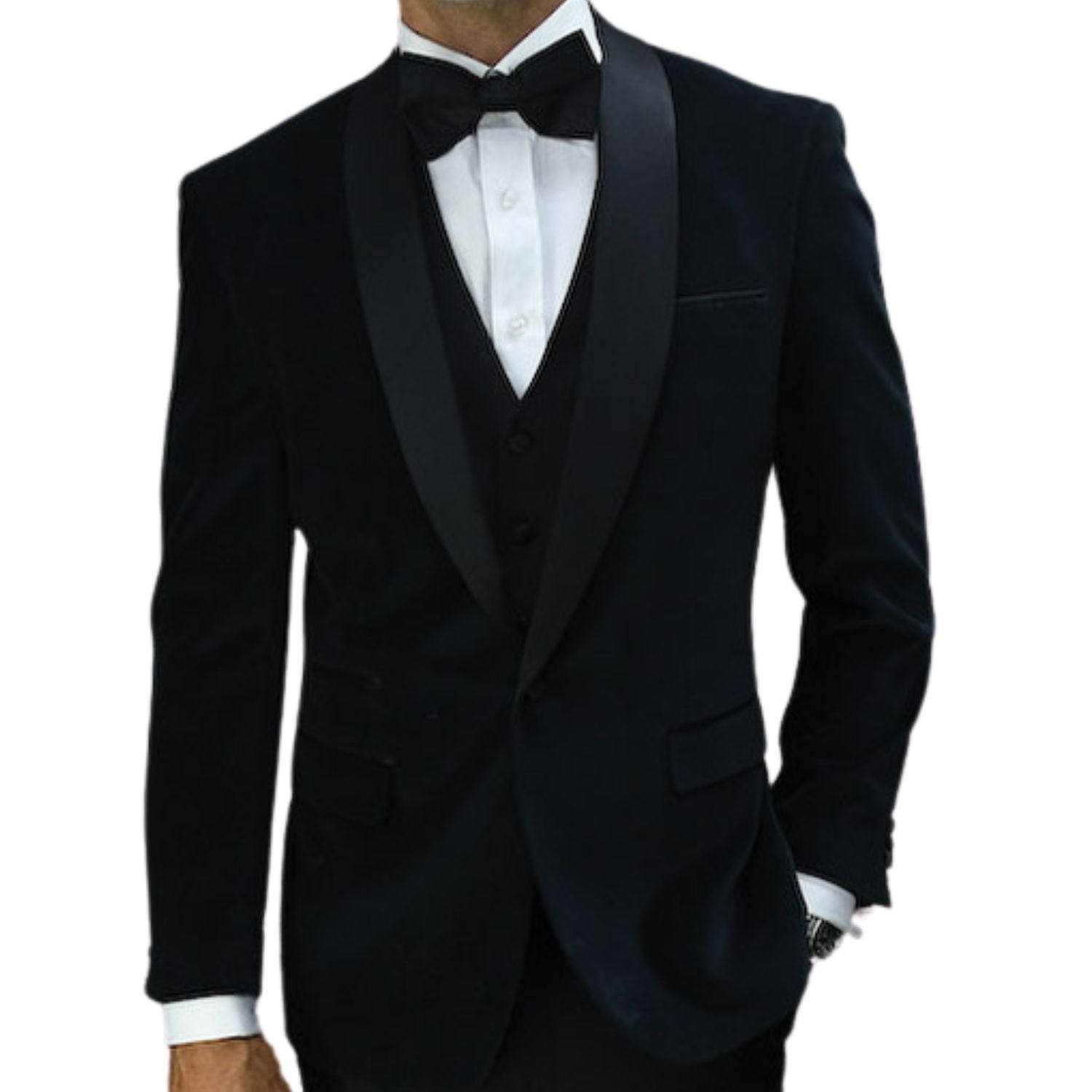Janus Collection: 2 PC Black Velvet Suit with Bow Tie