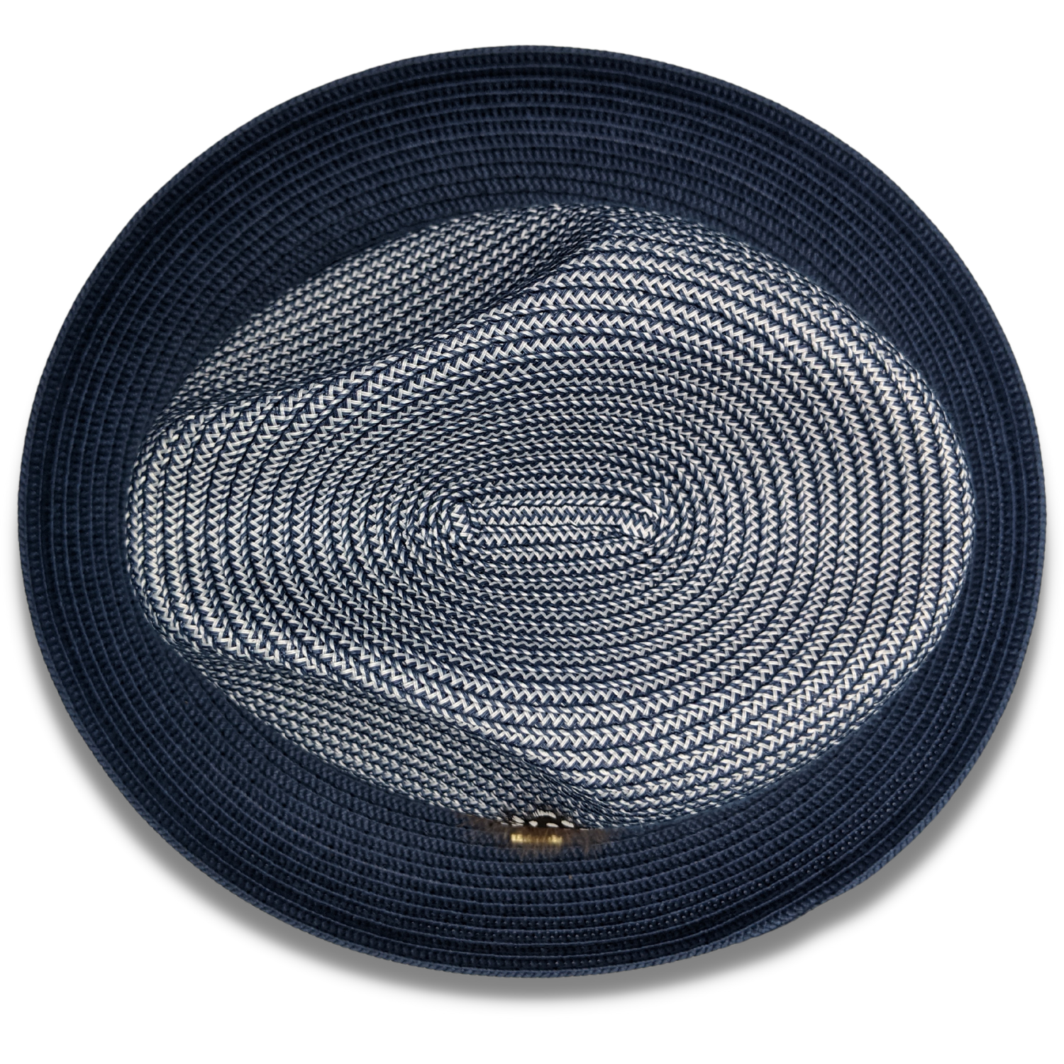 Jazzique Collection: Men's Braided Two Tone Stingy Brim Pinch Fedora Hat in Navy