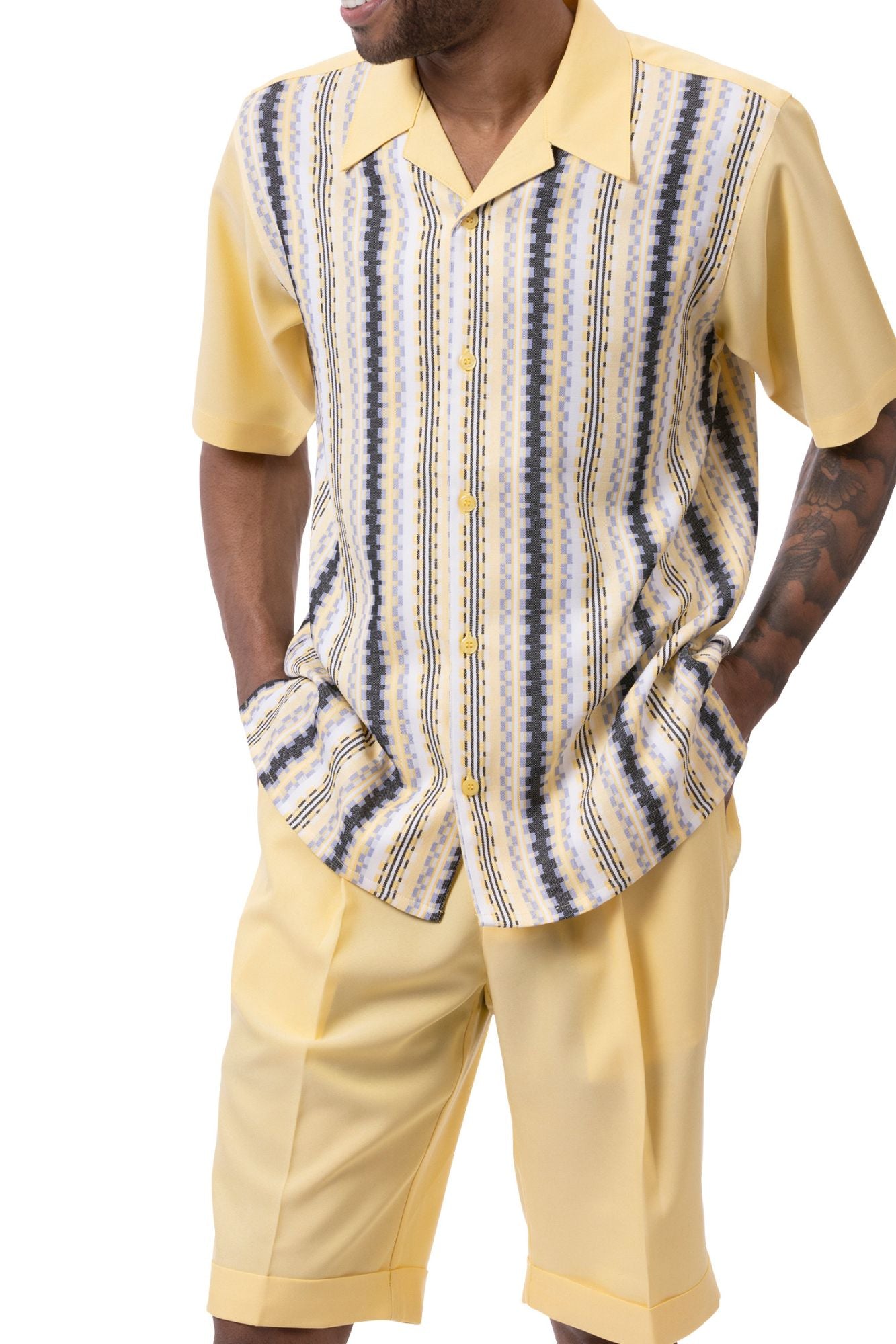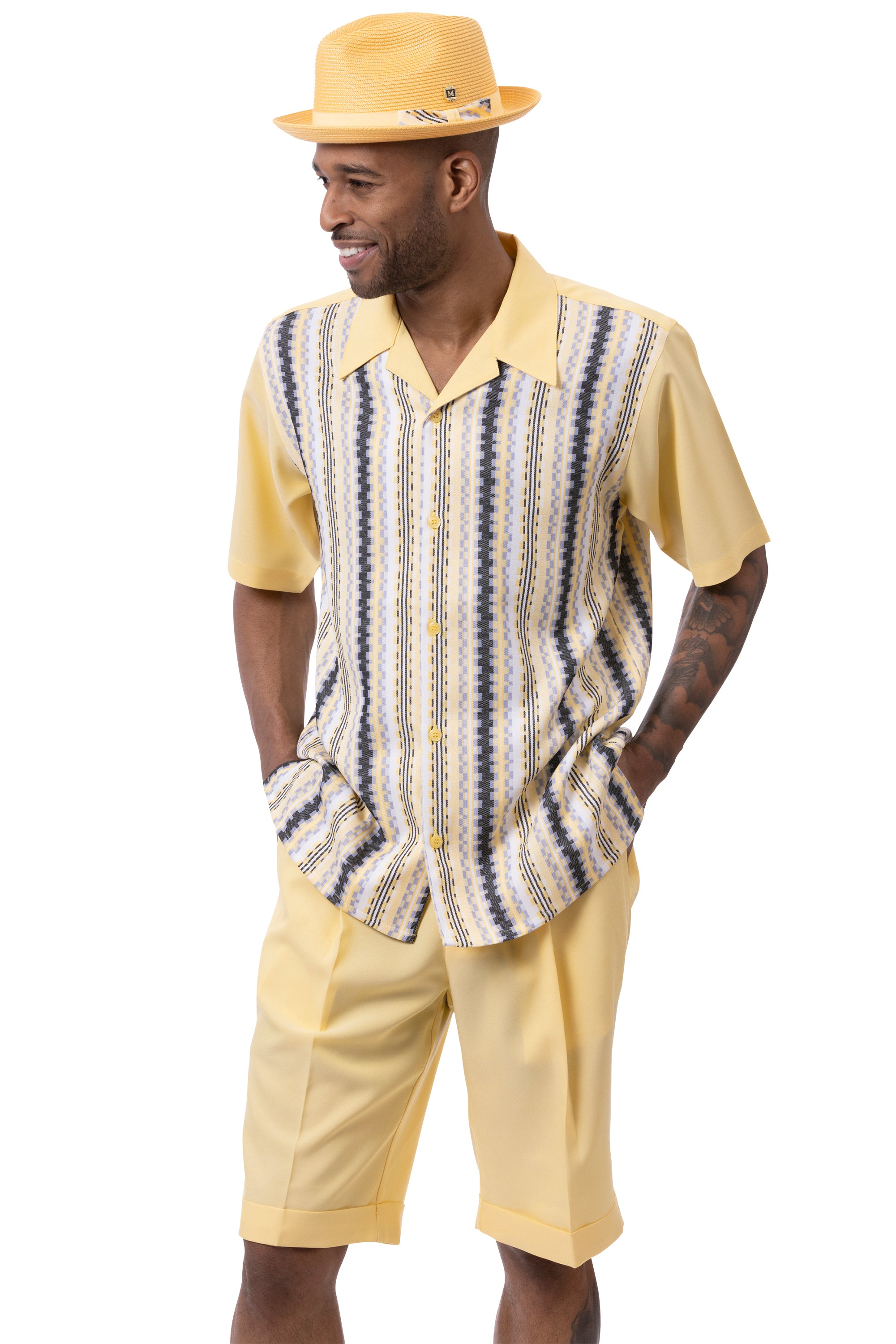 Jivejazzle Collection: Montique's Weave Design Shorts Walking Suit Set In Canary - 72401