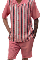 Jivejazzle Collection: Montique's Weave Design Shorts Walking Suit Set In Pink - 72401
