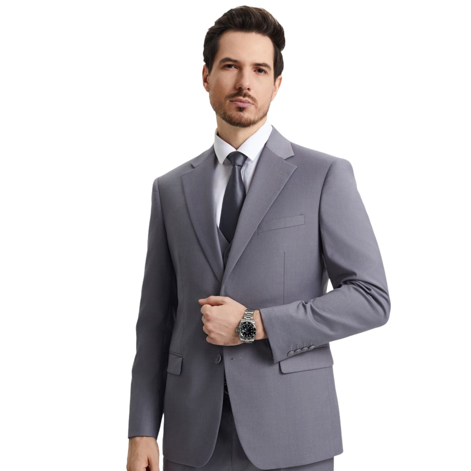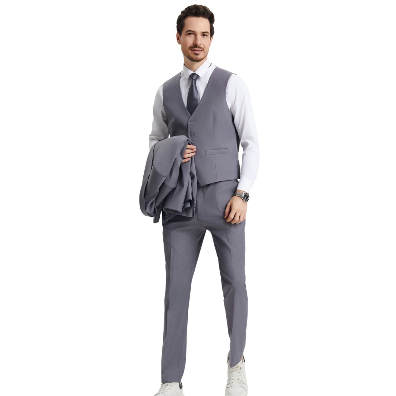 Part of the Kepler Collection, this Grey three-piece suit from Stacy Adams is designed for sharp, modern style with a hybrid fit. Featuring a structured notch lapel, side vents, and a sleek silhouette, it blends timeless elegance with contemporary tailoring. Perfect for formal occasions and refined everyday wear.