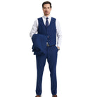 Part of the Kepler Collection, this Indigo three-piece suit from Stacy Adams is designed for sharp, modern style with a hybrid fit. Featuring a structured notch lapel, side vents, and a sleek silhouette, it blends timeless elegance with contemporary tailoring. Perfect for formal occasions and refined everyday wear.