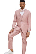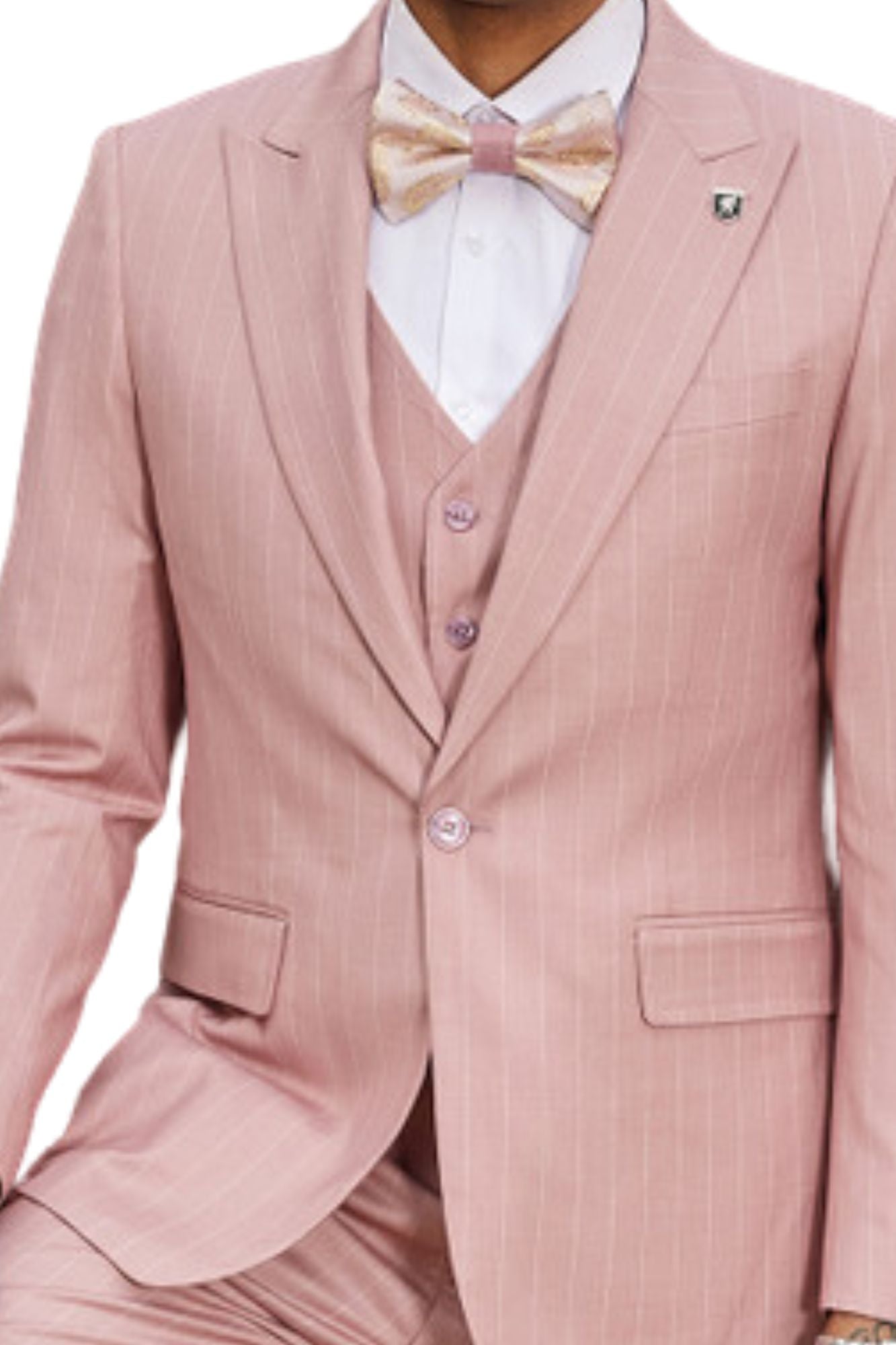 Lavellaby Collection: 3 Piece Men's Pinstripe Hybrid Fit Suit In Pink