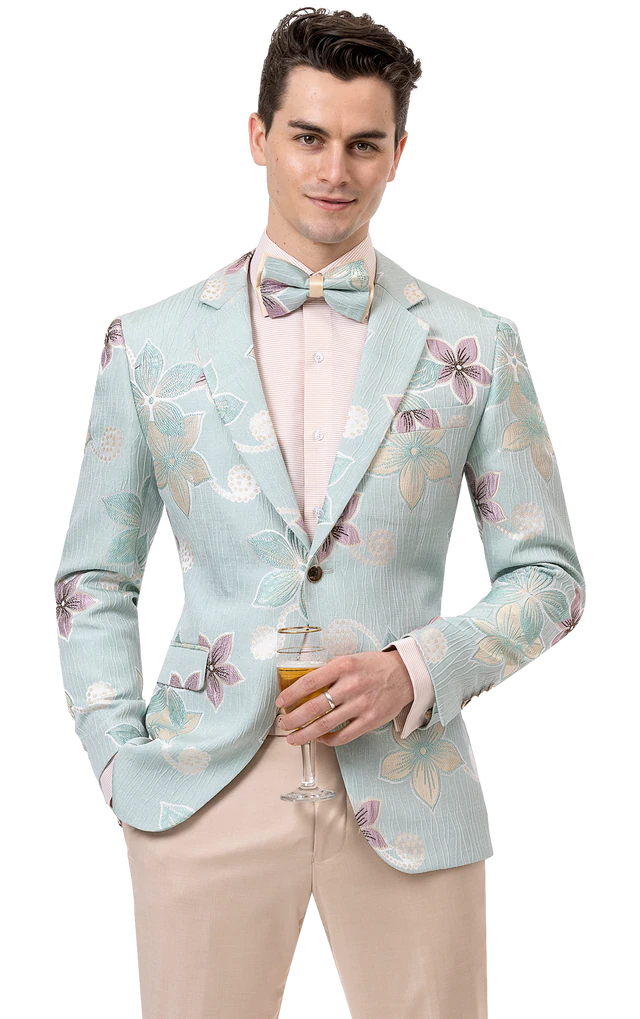 Light Teal Floral Print Fashion Blazer J148 - Size 44R FINAL SALE