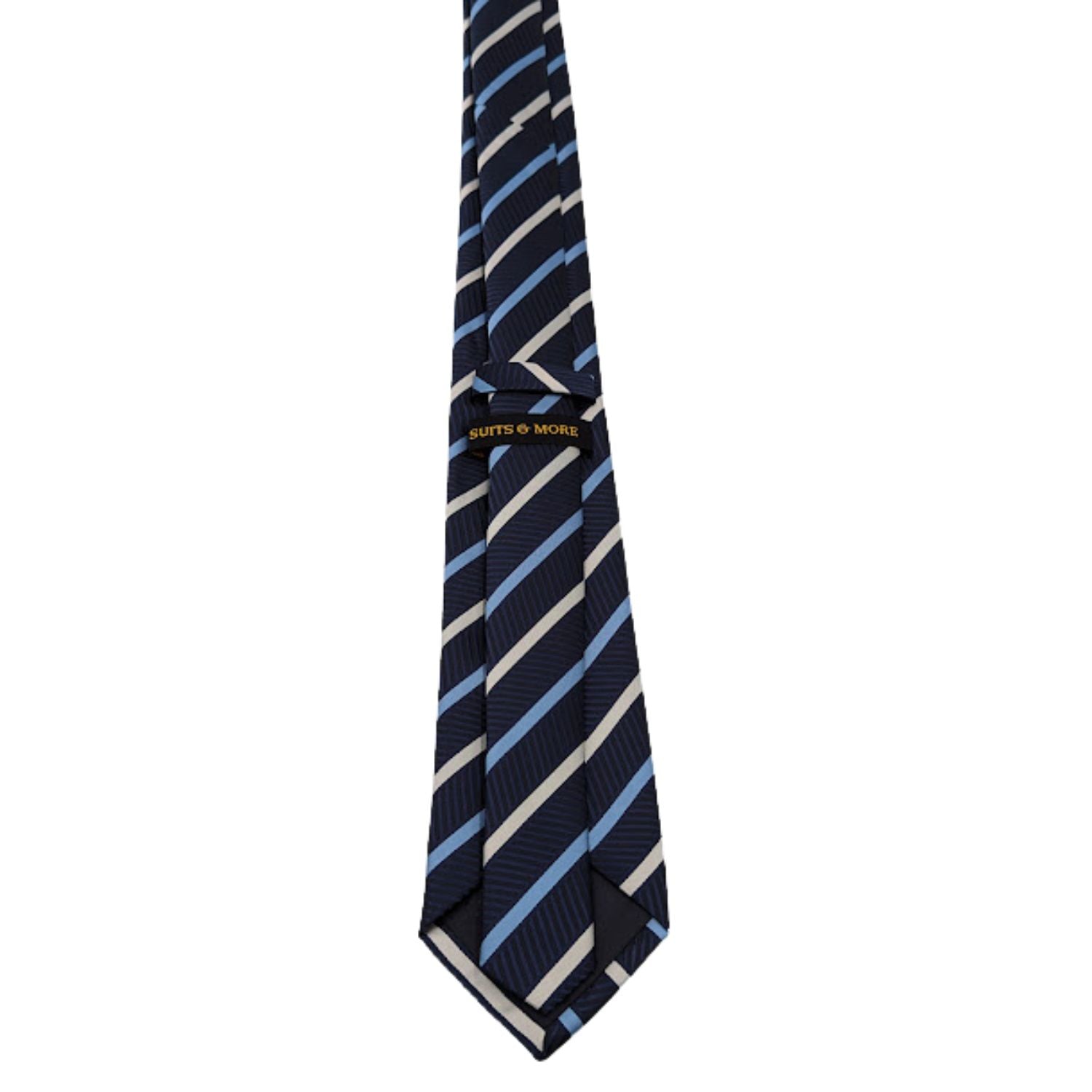 Introducing the Linear Flow Collection's Navy Linear Tie, a symbol of precision and sophistication. Crafted meticulously from 1200 needle refined polyester, this tie features a sleek linear pattern in a deep navy hue, designed to add a modern touch to traditional attire. this tie is the epitome of refined style, offering a perfect blend of classic and contemporary aesthetics suitable for any occasion.
