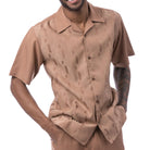 Loomline Collection: Montique Men's Mocha 2-Piece Tone-on-Tone Jacquard Short Sleeve Set