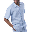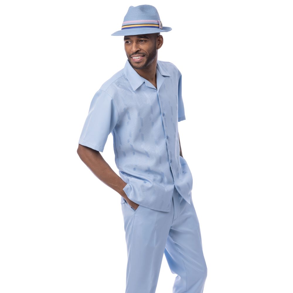 Loomline Collection: Montique Men's Sky Blue 2-Piece Tone-on-Tone Jacquard Short Sleeve Set