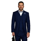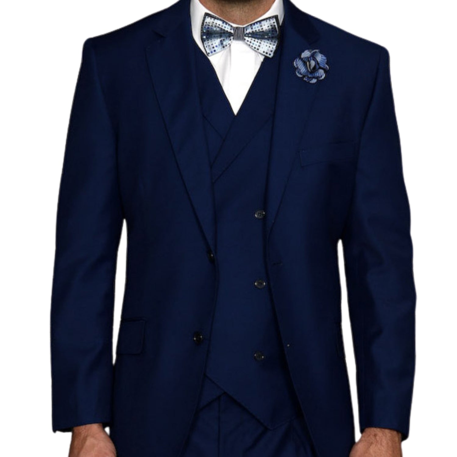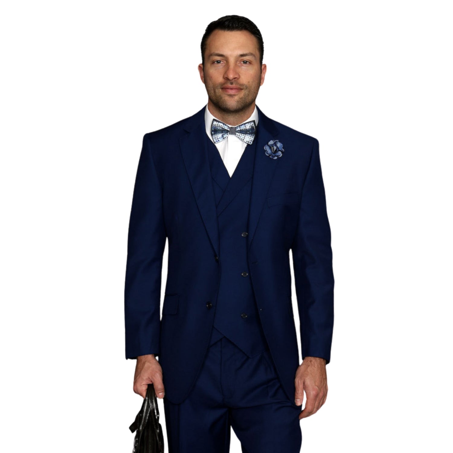 LunarLuxe Collection: Sapphire 3-Piece Suit with Double-Breasted Vest and Pleated Pants - Classic Fit