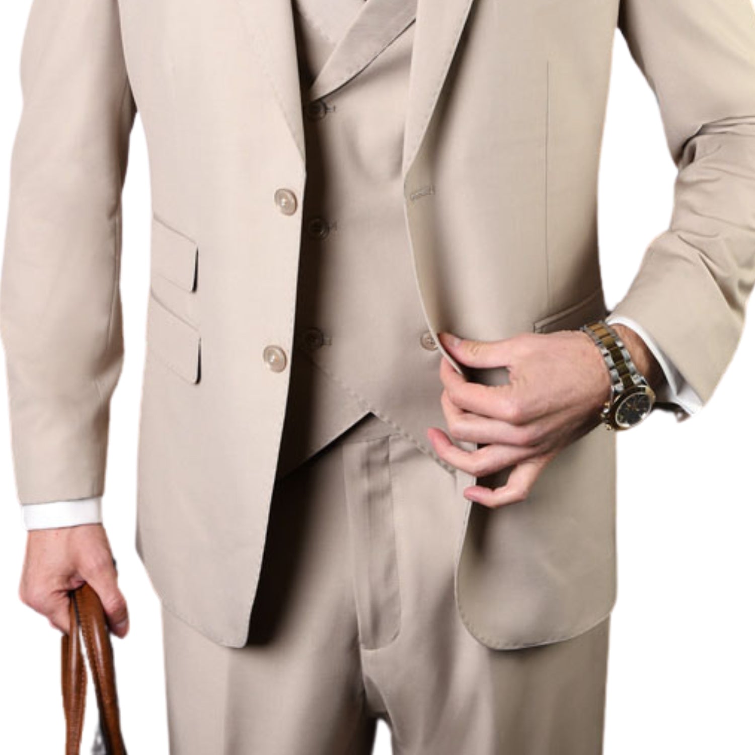 LunarLuxe Collection: Tan 3-Piece Suit with Double-Breasted Vest and Pleated Pants - Classic Fit