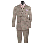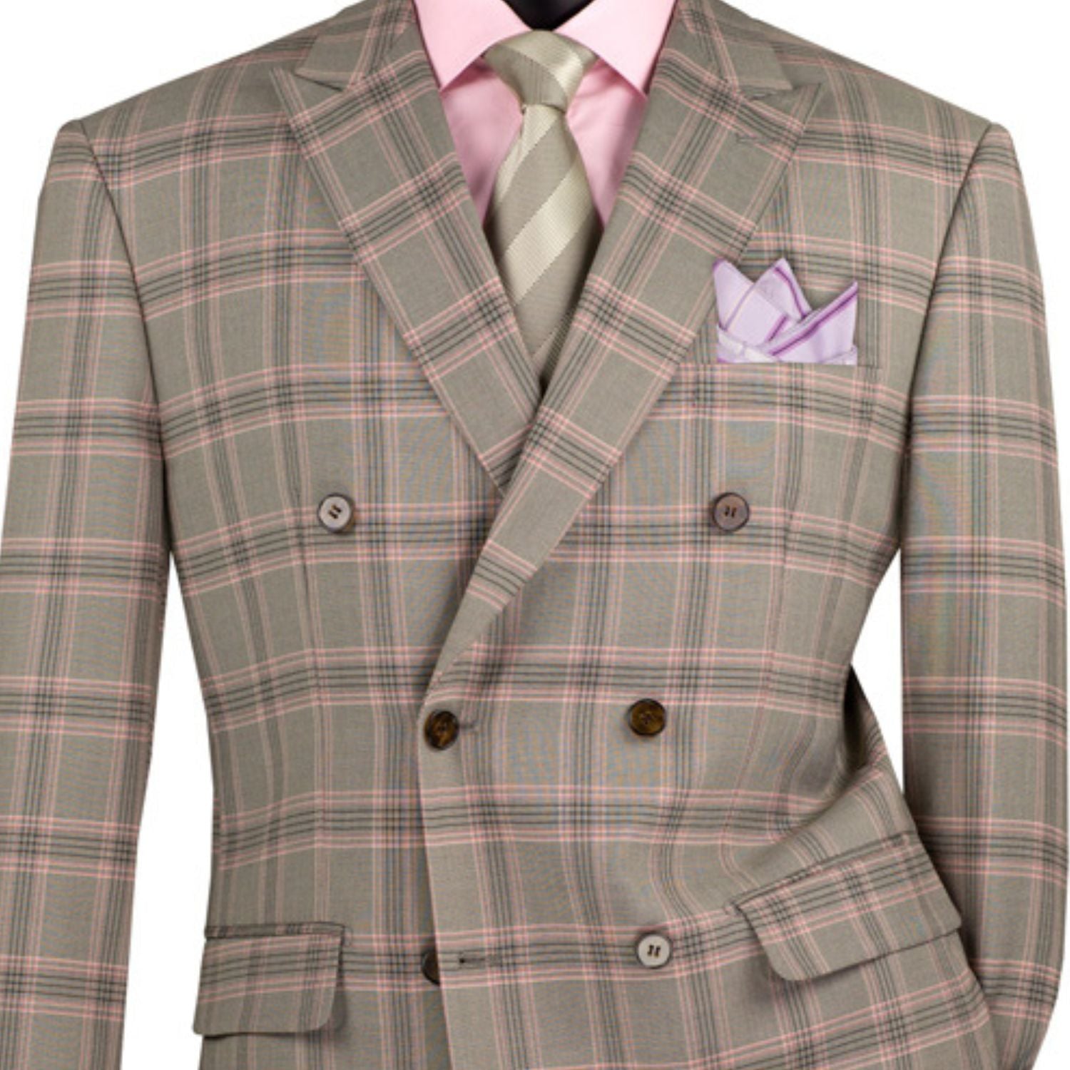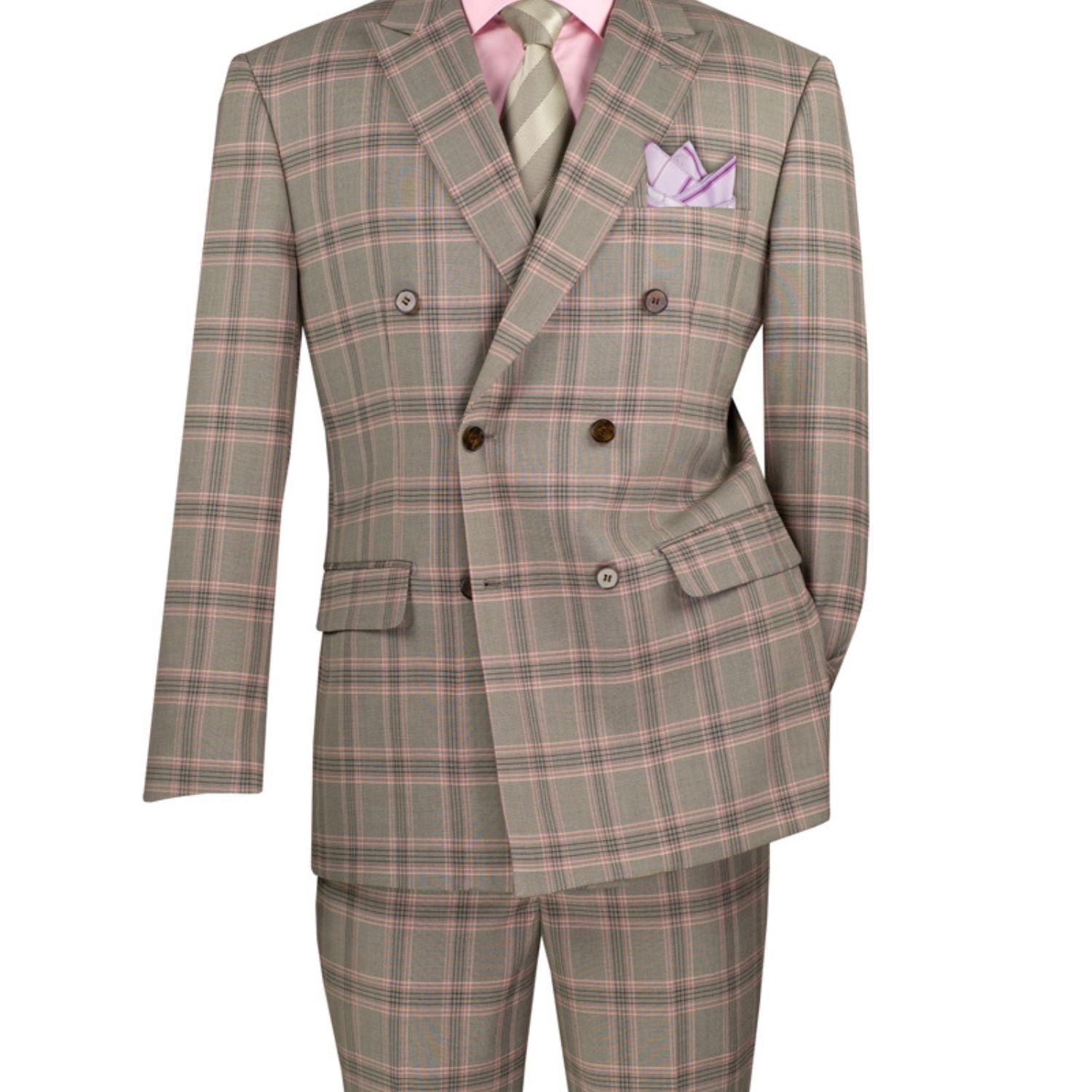 Luxelito Collection: Light Taupe 2 Piece Glen Plaid Double Breasted Modern Fit Suit