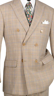 LuxLands Collection: Beige 2 Piece Glen Plaid Double-Breasted Regular Fit Suit