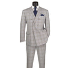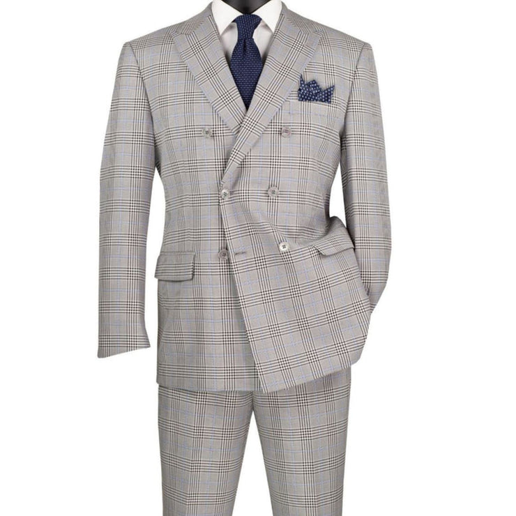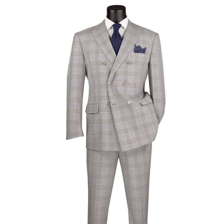 LuxLands Collection: Gray 2 Piece Glen Plaid Double-Breasted Regular Fit Suit
