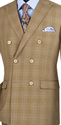 LuxLands Collection: Mocha 2 Piece Glen Plaid Double-Breasted Regular Fit Suit