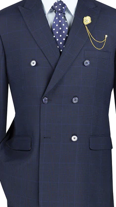 LuxLands Collection: Navy 2 Piece Glen Plaid Double-Breasted Regular Fit Suit