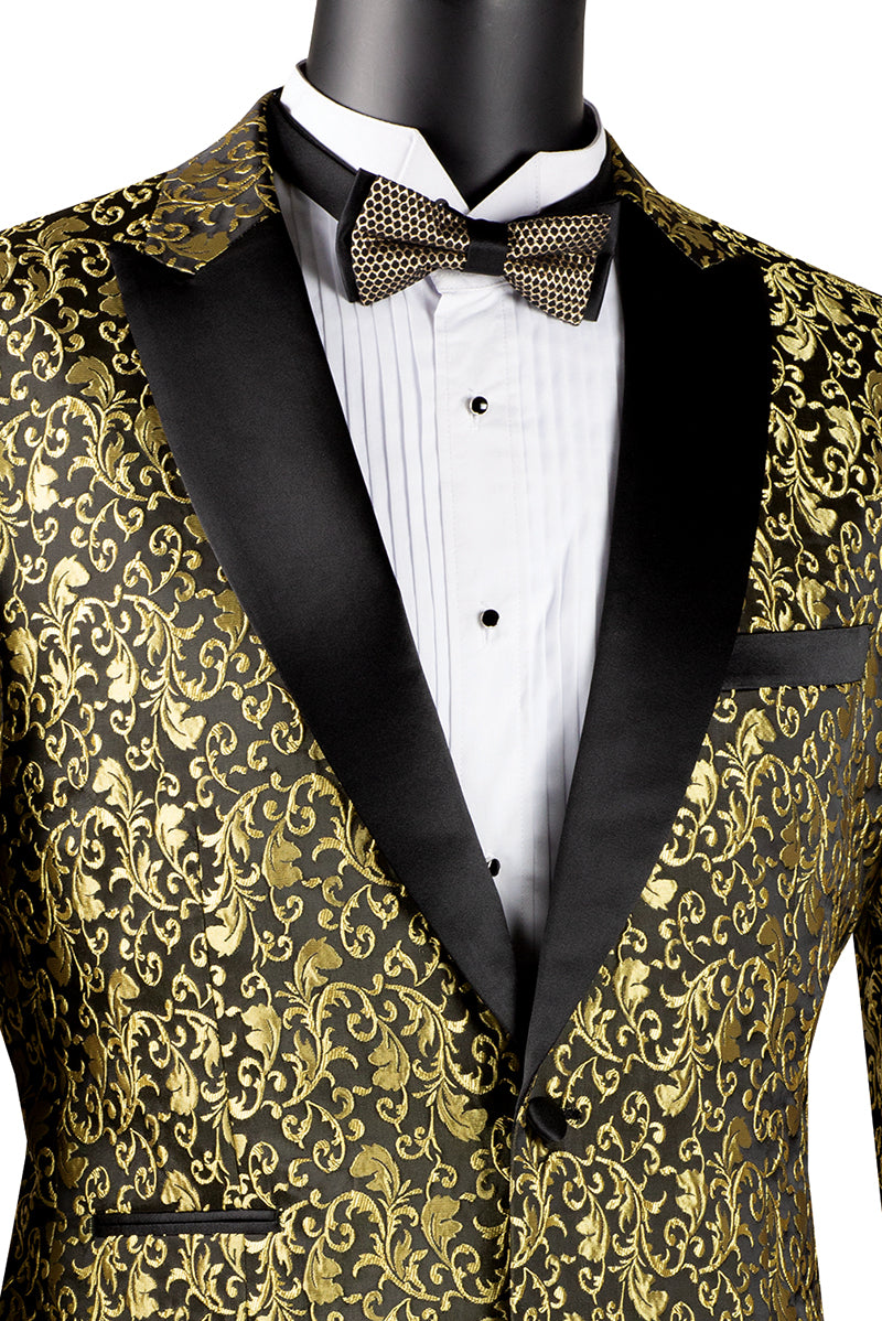 Luxnova Collection: Gold Jacquard Print Shawl Lapel Blazer – Regular Fit