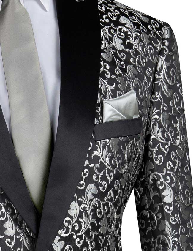 Luxnova Collection: Silver Jacquard Print Shawl Lapel Blazer – Regular Fit
