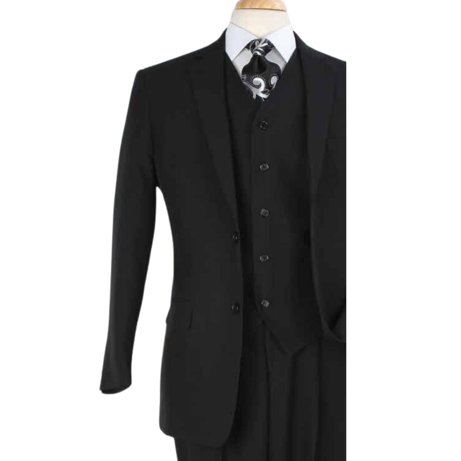 Luxury Wool Feel Black Classic Fit 3-Piece Suit Set with Vest