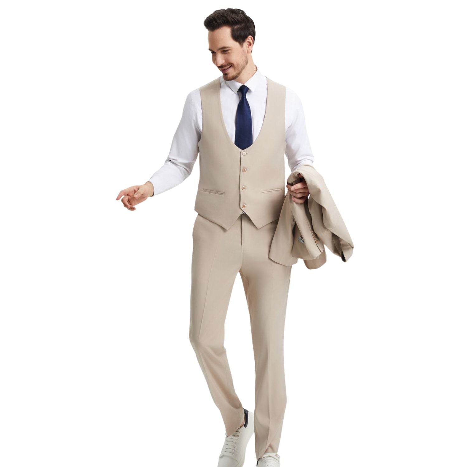 Designed for modern elegance, the Maroonyx Collection by Stacy Adams delivers a sleek, tailored look in a solid Tan hybrid fit. This three-piece suit—jacket, vest, and pants—offers refined details and timeless versatility, making it ideal for both formal and stylish casual settings.