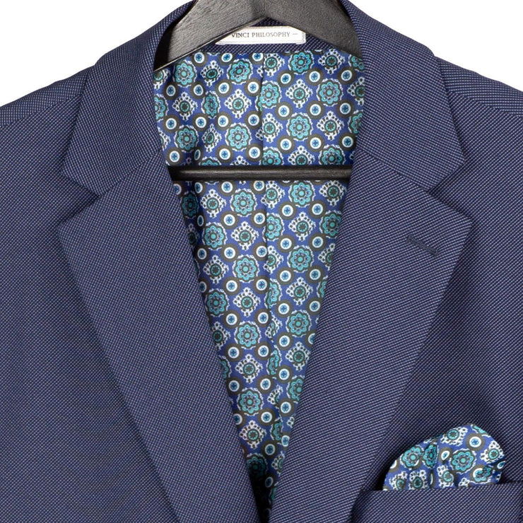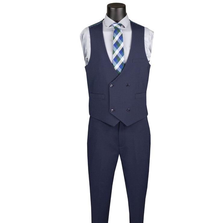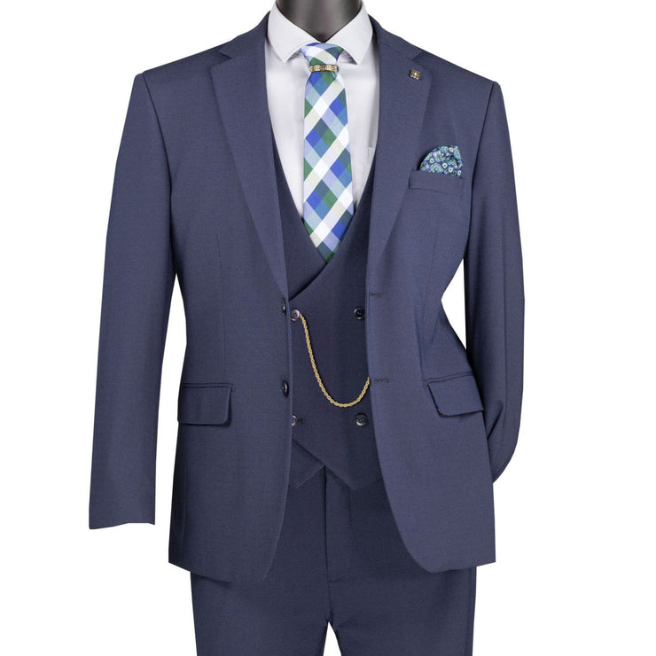 Mavix Collection: 3-Piece Modern Fit Suit with Built-In Pocket Square and Lapel Pin in Navy