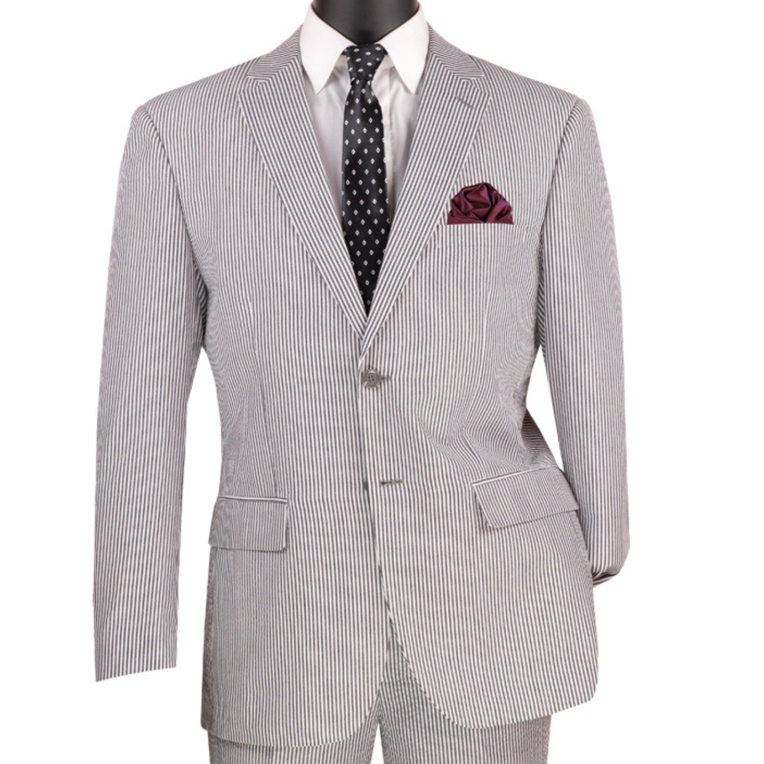 Medievalor Collection: Black 2 Piece Seersucker Single Breasted Modern Fit Suit