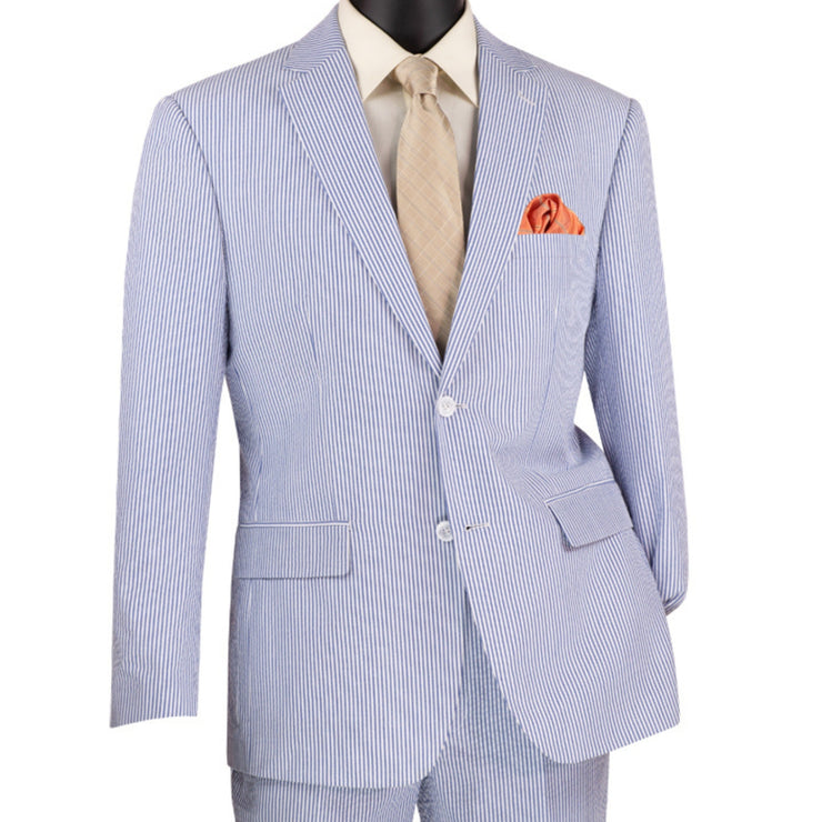Medievalor Collection: Navy Blue 2 Piece Seersucker Single Breasted Modern Fit Suit
