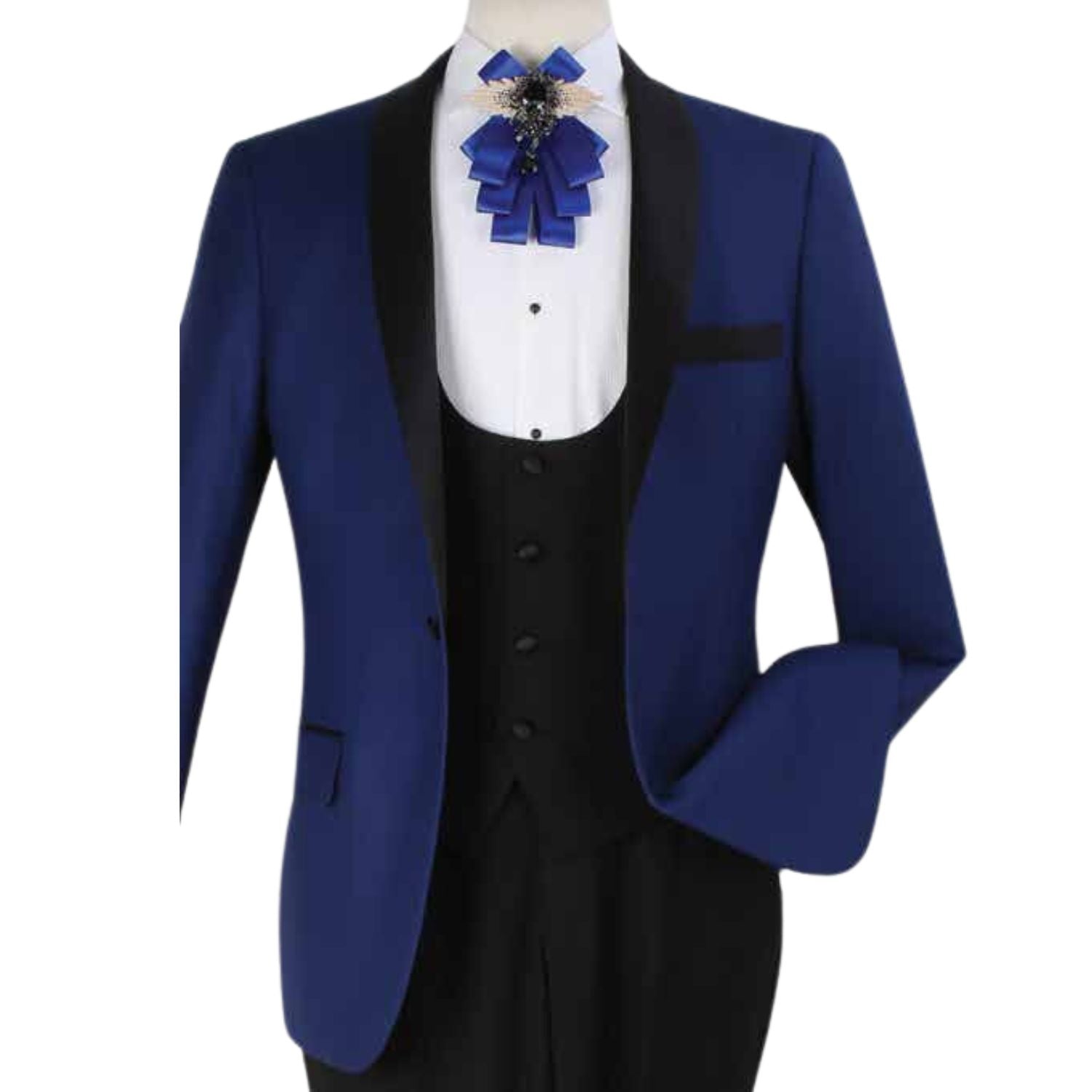 - Color: A striking shade of blue, offering a vibrant yet elegant alternative to traditional black tuxedos.