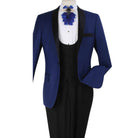 Make a lasting impression at any upscale event with our Men's Blue Modern Fit 3-Piece Tuxedo from the Gala Evening Collection. This tuxedo set includes a stylish vest that complements the sophisticated and modern silhouette, perfect for weddings, galas, or any formal occasion.