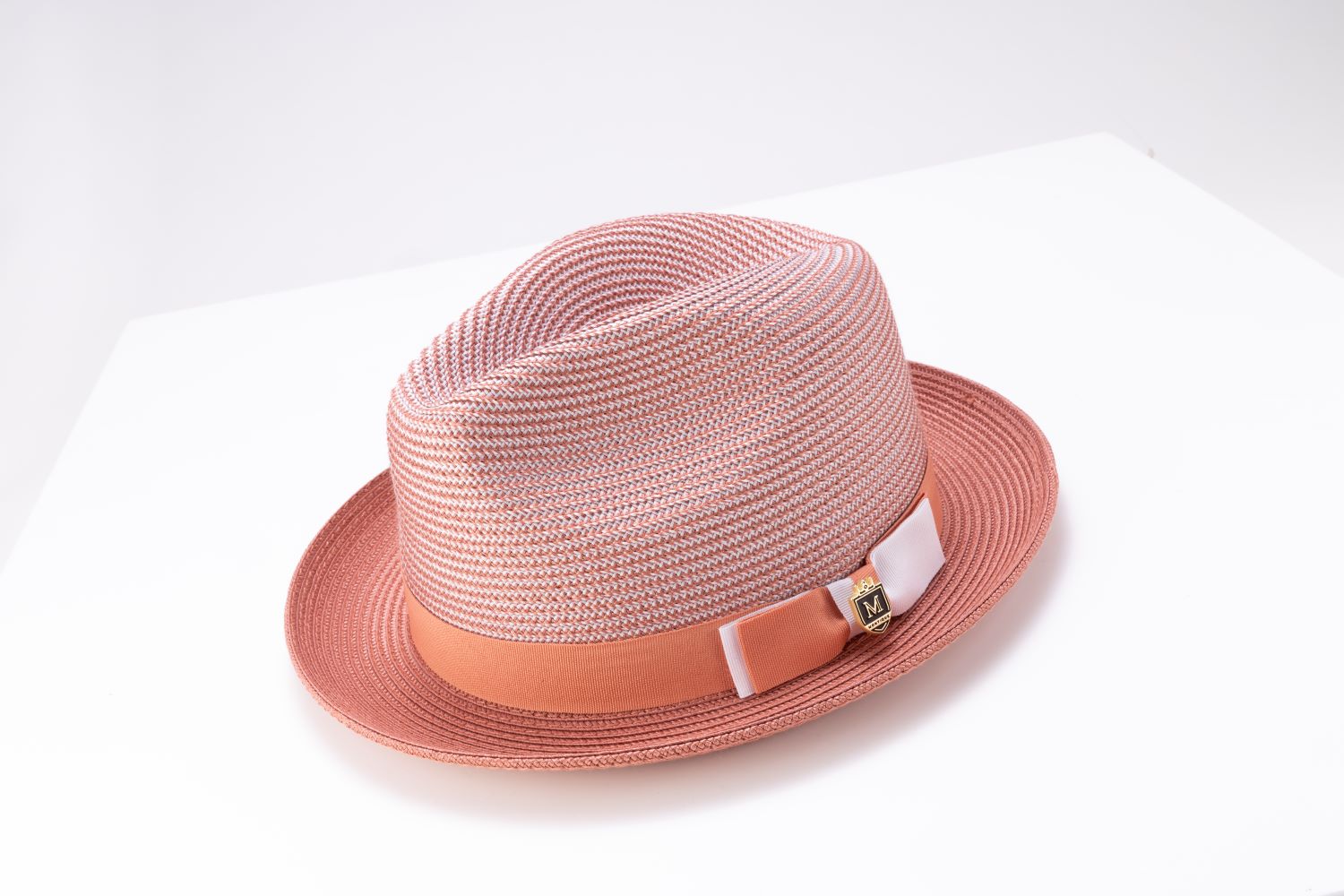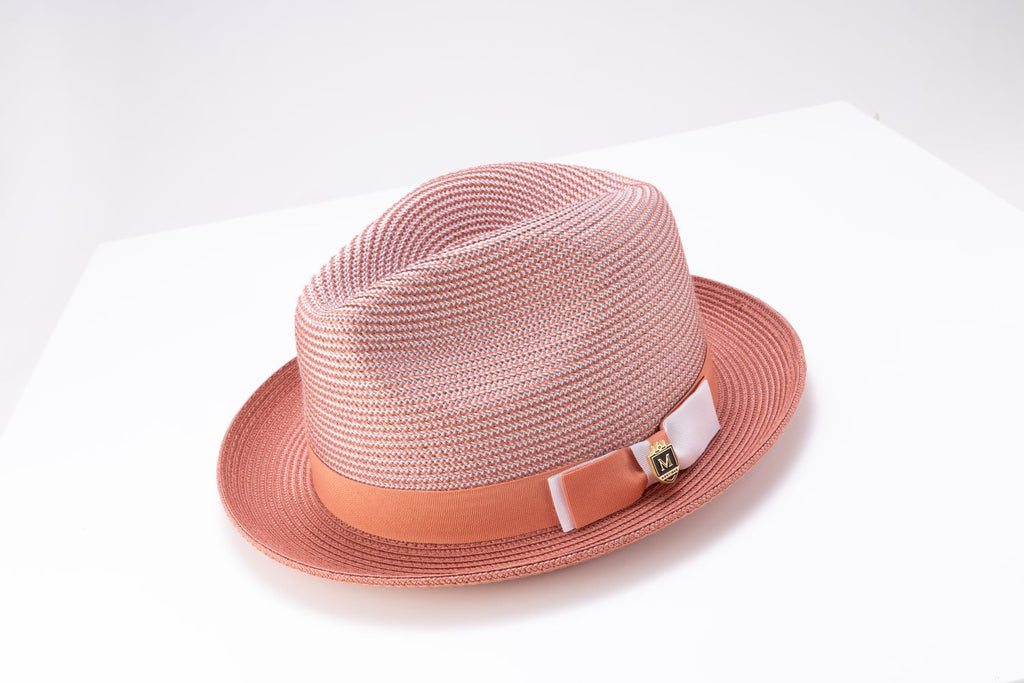 Rubique Collection: Montique Men's Braided Two Tone Stingy Brim Pinch Fedora Hat in Papaya