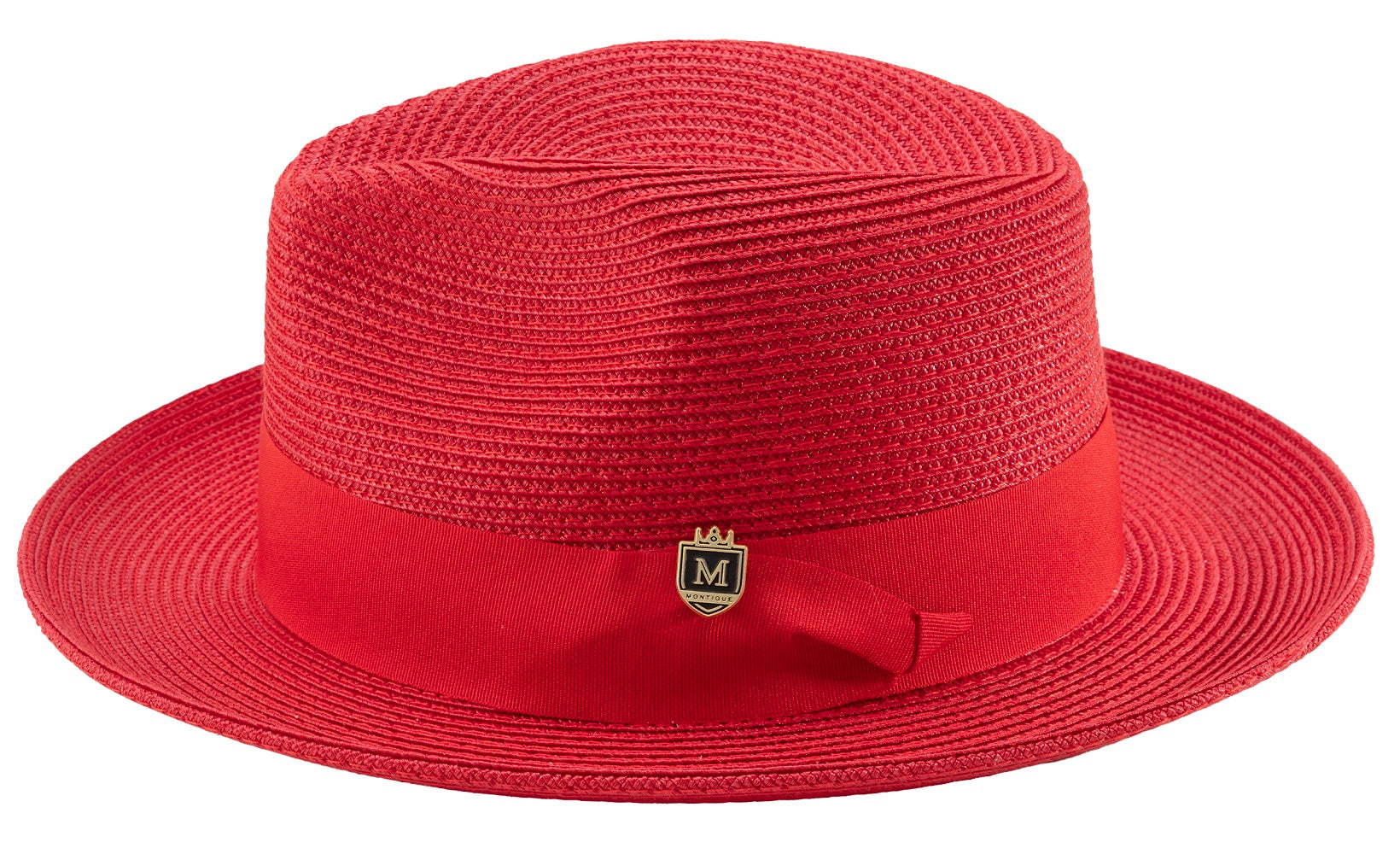 Make a statement with our eye-catching Red Braided Wide Brim Pinch Fedora Matching Grosgrain Ribbon Hat H42! Crafted from a lightweight polyester blend and featuring a stylishly braided pinched crown, a matching grosgrain ribbon, and a wide 2 1/2" brim, this fedora is sure to turn heads. Plus, with the addition of an elegant Montique pin, your look will truly stand out. Ready to rock the house?